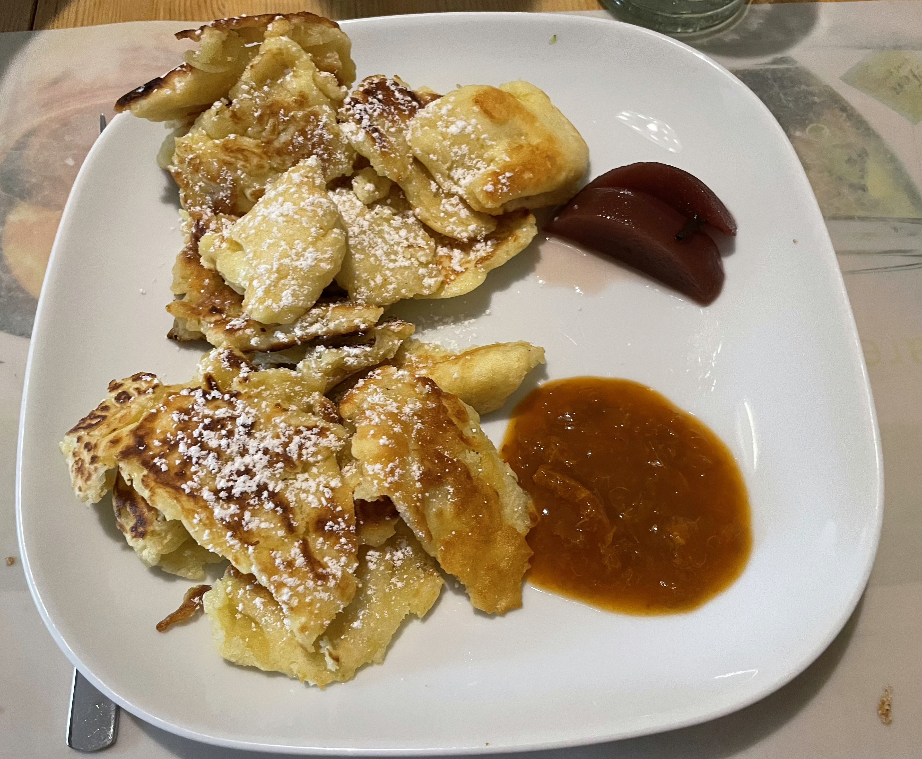Da wir beide schon mehrmals in Wien waren und das Wetter nicht sehr gut war, haben wir im Zentrum nur einen Essensstop gemacht. Das Take-Away-Wienerschnitzel, auf welches wir uns sehr gefreut haben, war leider eher ein Wienerschmarrn 😂, vor Fett triefend und später noch vom Regen getränkt 😅.