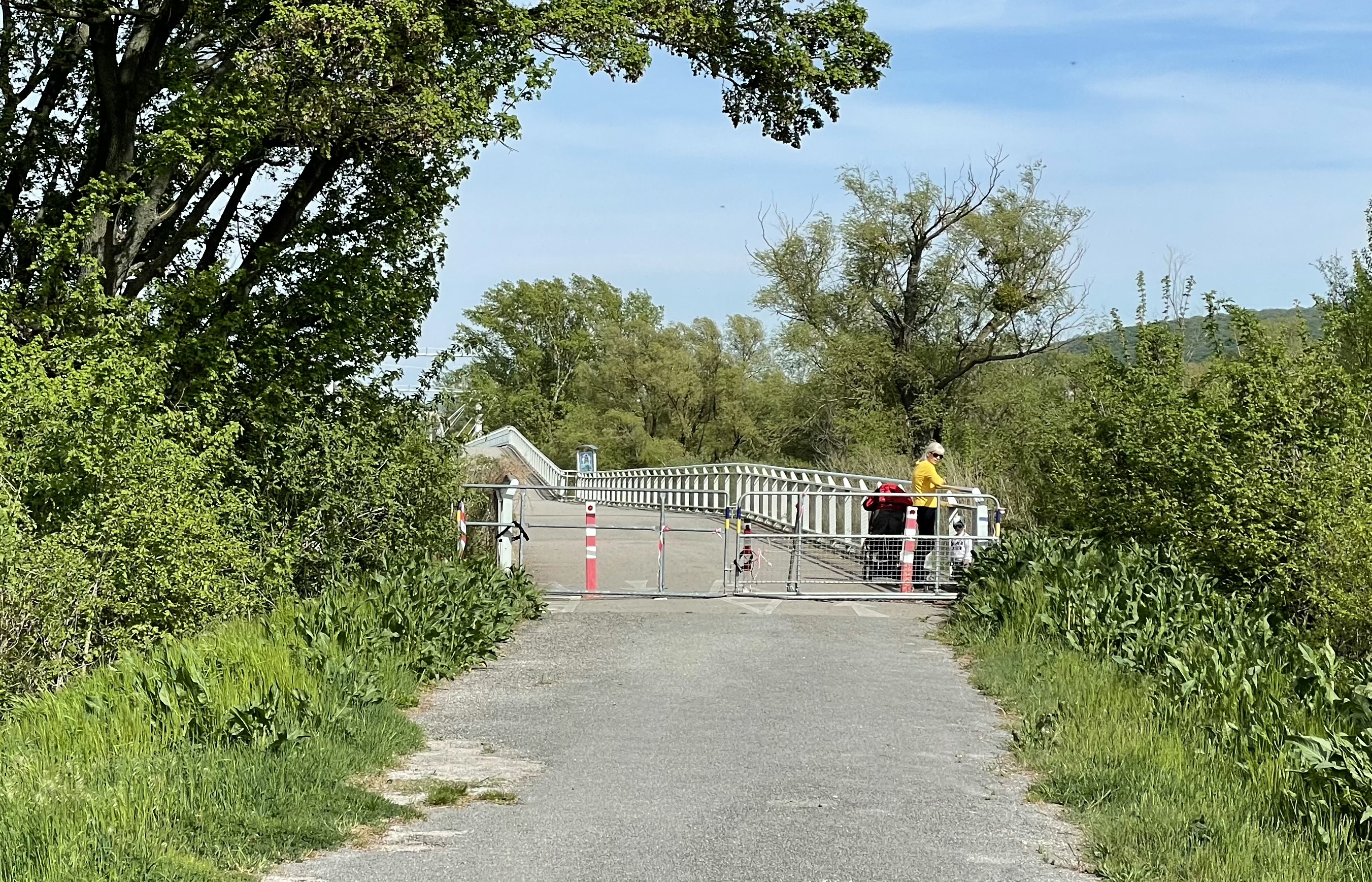 Route angepasst, Grenzübertritt in Angriff genommen, sehen wir einen Zaun an der grünen Grenze zur Slowakei. Unter den neugierigen Blicken einer Slowakin mit ihrem Kind versucht Beni den Zaun zu öffnen 💪🏻. Als wir diese Hürde geschafft haben, hatte Beni noch die Nerven, die Frau um ein Foto zu bitten, Nicole wäre am liebsten direkt weiter gefahren, da wir noch eine Brücke überqueren mussten bis wir definitiv in der Slowakei angekommen sind.