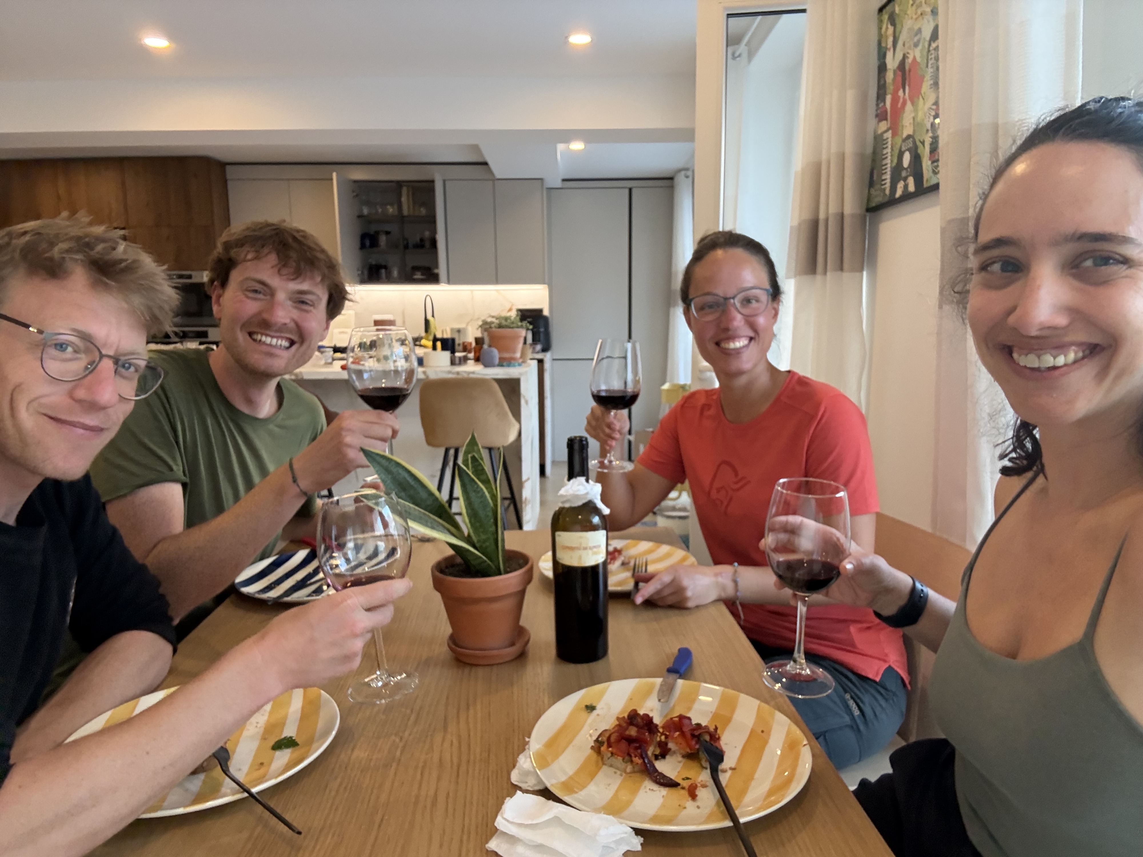As a small token of our appreciation, we cook them a delicious dinner—for us, that’s just part of giving something back. With some good Portuguese wine, the evening quickly turns into a lively gathering; we laugh a lot and have fascinating conversations. They’ve only been living here for two years and are originally from Israel—which makes their stories and perspectives all the more interesting.