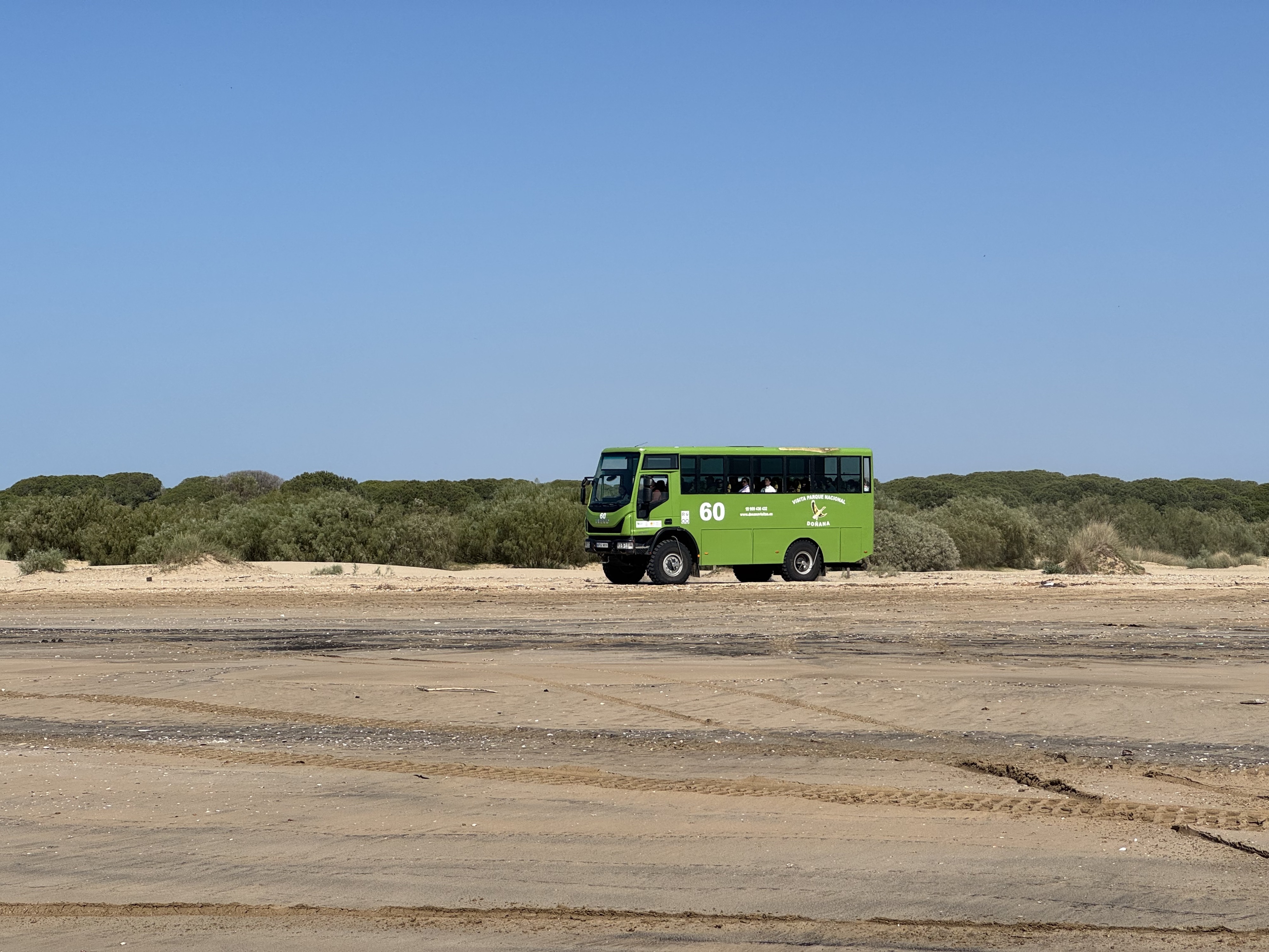 After two nights on the ferry, we really needed that good night’s sleep, because the next adventure is already waiting: a roughly 30-kilometer stretch of beach in the Doñana Nature Reserve between Sanlúcar and Matalascañas, which is more or less passable. There are really only two options: either you take a long detour through Seville with heavy traffic, or you venture across the sand.