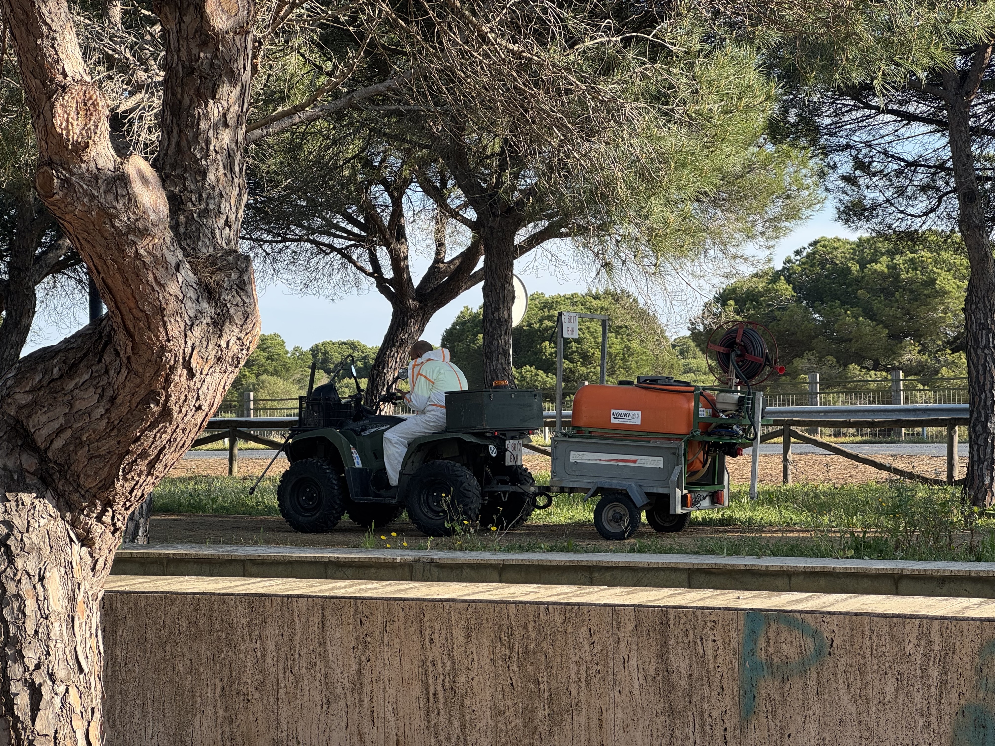 No sooner had things quieted down than we heard the next sound: a loud humming. We looked out—and saw a young man driving straight toward us on a state-of-the-art John Deere lawn tractor 🙈. Oops.