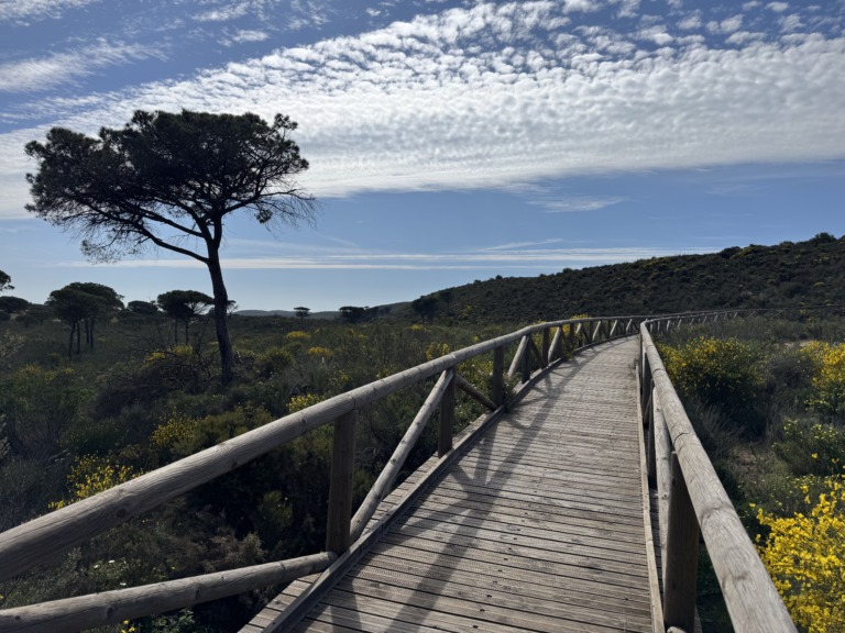 Now it’s not far to the Portuguese border. We’re enjoying the weather to the fullest—a great decision to leave the Canary Islands and return to the mainland. Just in time for our arrival, the weather has improved significantly. As you may have noticed, winter in southern Spain and Portugal was marked by numerous floods and extreme rainfall. Now the sun is smiling down on us every day in the weather forecast.