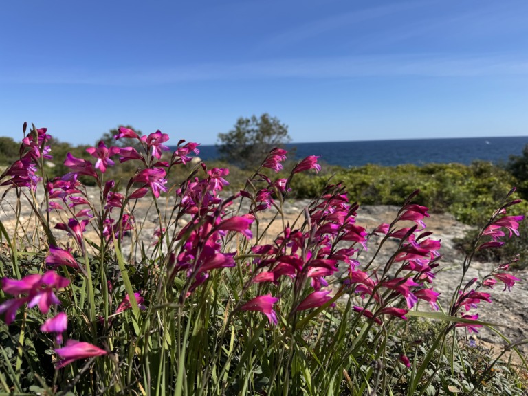 Thanks to paragliding, we keep ending up in places like this—and, as a bonus, we quickly strike up conversations with other pilots. So Beni takes off here for a breathtaking flight and glides along the coast. Meanwhile, Nicole enjoys chatting in Swiss German with a few other Swiss people at the launch site for the first time in a long while.