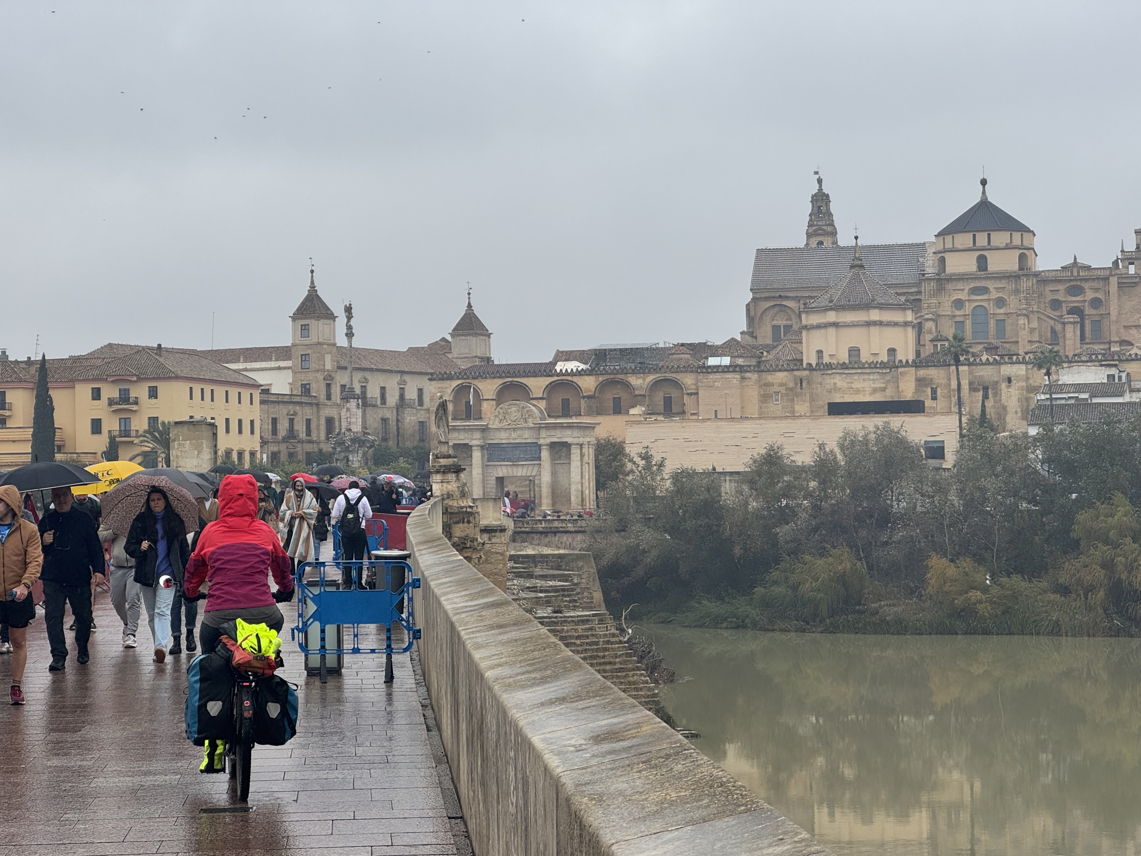 Olive groves, olive groves, and more olive groves. We desperately needed a change of scenery. So we decided to take a little detour via the Sierra de Hornachuelos Nature Park. But first, the route took us through the beautiful city of Córdoba. Unfortunately, persistent rain made this stage of the journey rather unpleasant. Luckily, we had been traveling almost exclusively in sunshine up to that point. At least it gave us the opportunity to put our new ponchos through their paces once again.