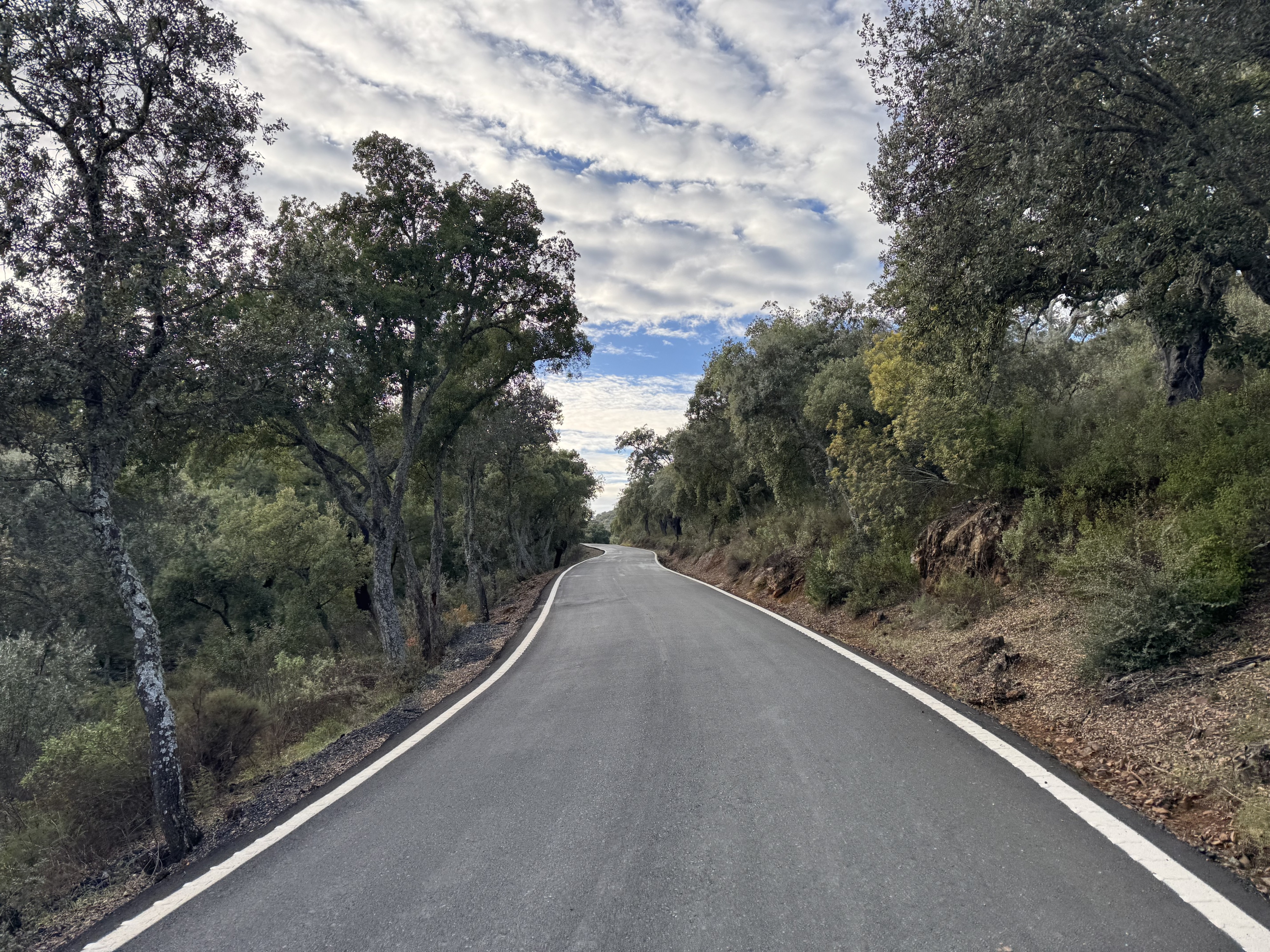 Now we have to pedal hard again so that we can arrive in the village of Cazalla de la Sierra in time and spend the worst day of rain in accommodation. Fortunately, most of the route follows an enchanting cycle path, the Vía Verde de la Sierra Norte. This runs along the former railway line that once connected the Zafra–Seville train line with the mines of Cerro del Hierro.