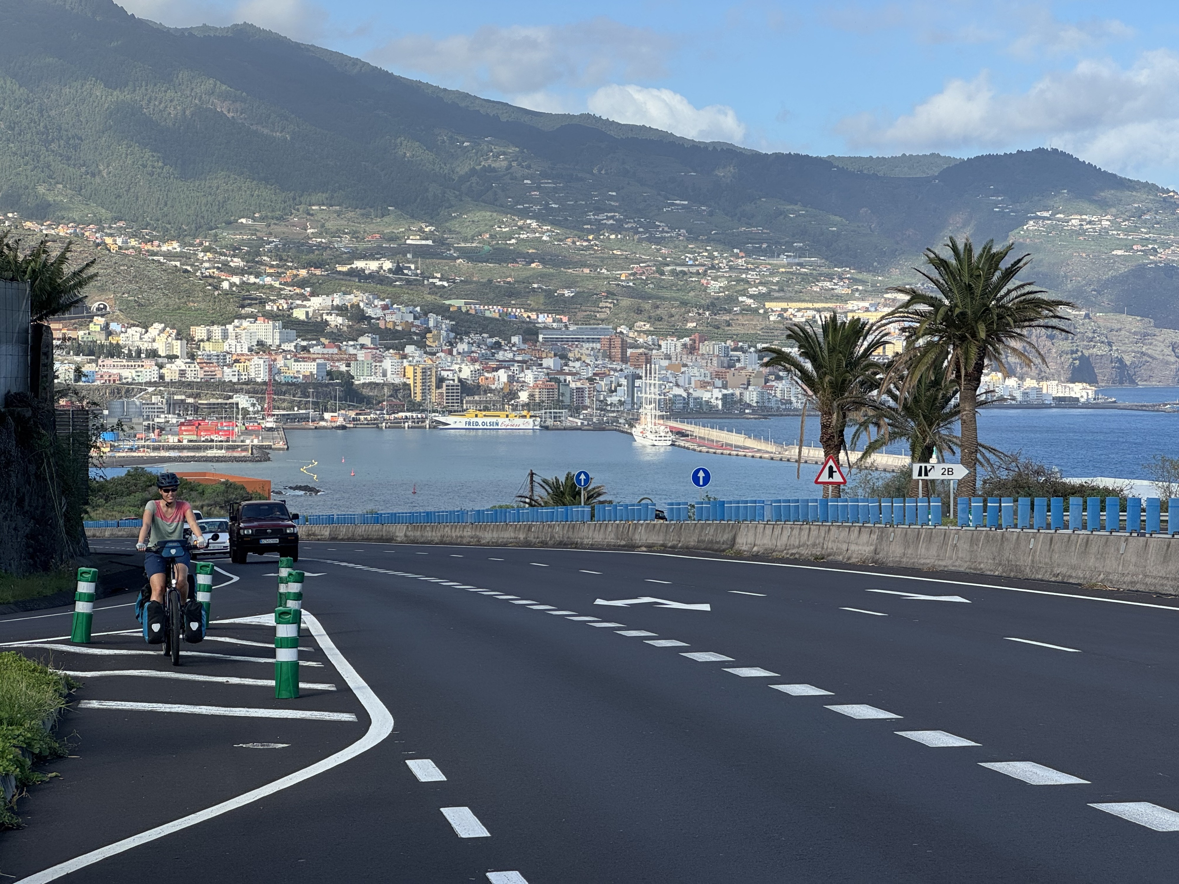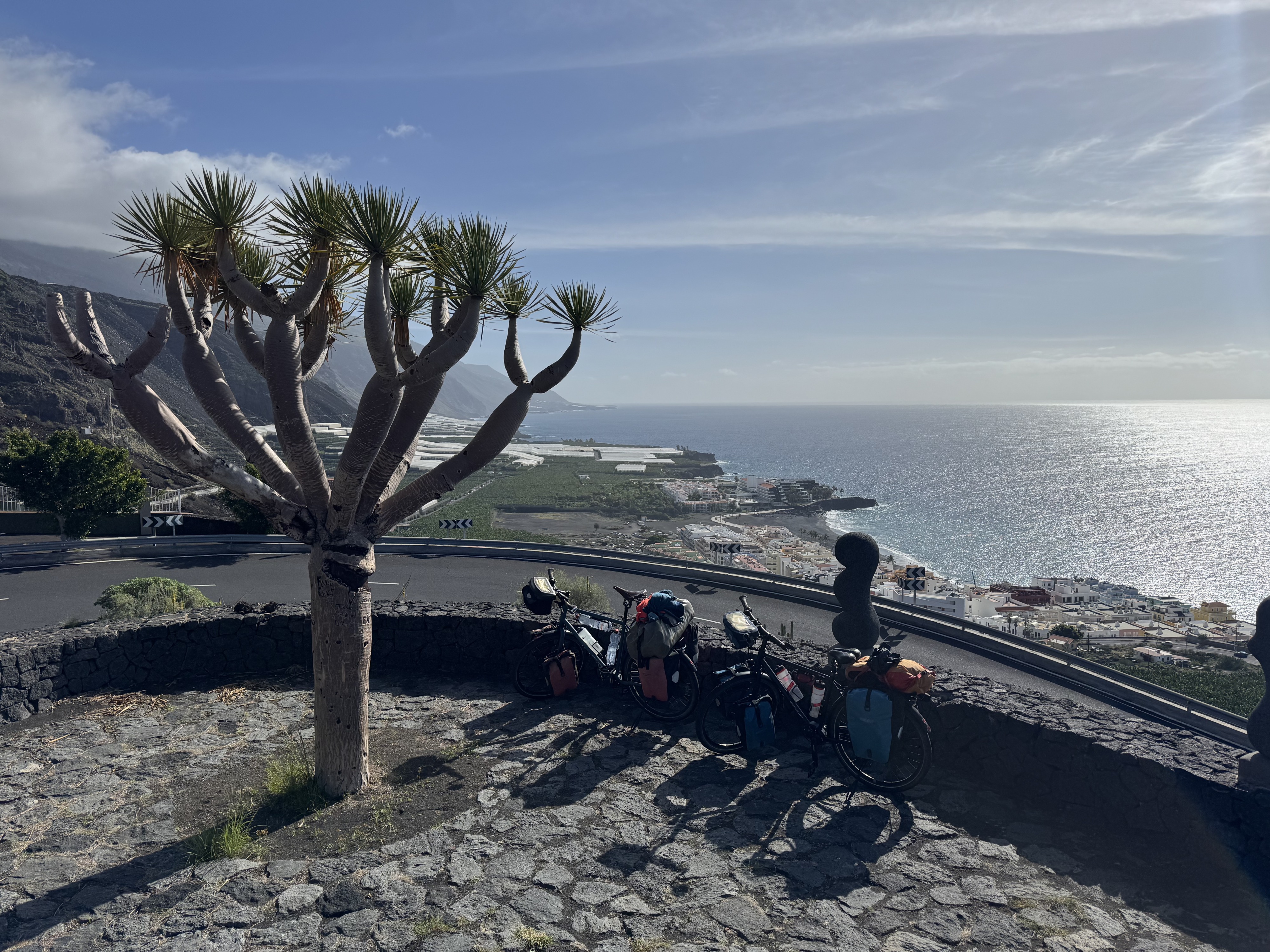 We mastered the remaining distance with tears in our eyes and constant smiles on our faces. As cyclists, we generally enjoy descents immensely, but these 1,000 meters of elevation gain were simply the icing on the cake. Rarely have we felt such intense happiness as when we rode into Puerto Naos, where we will now be staying for six weeks.