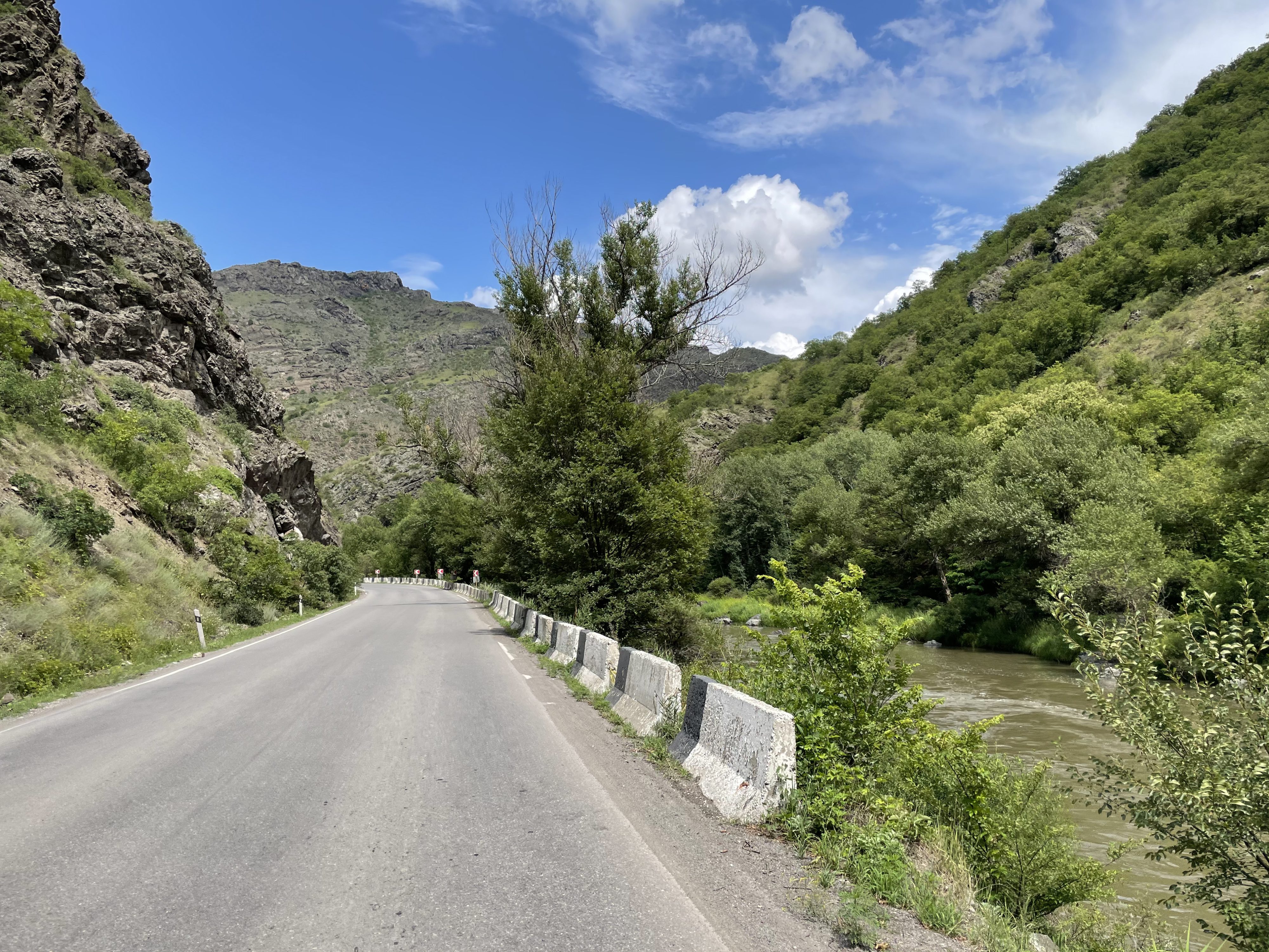 More rested than the others, we set off early, because Tbilisi was only two bike days away. On the last day, another amazing descent was waiting for us. Fabulous 1,440 hm on best asphalt downhill partly with top speeds of 70 km/h 💪🏻.