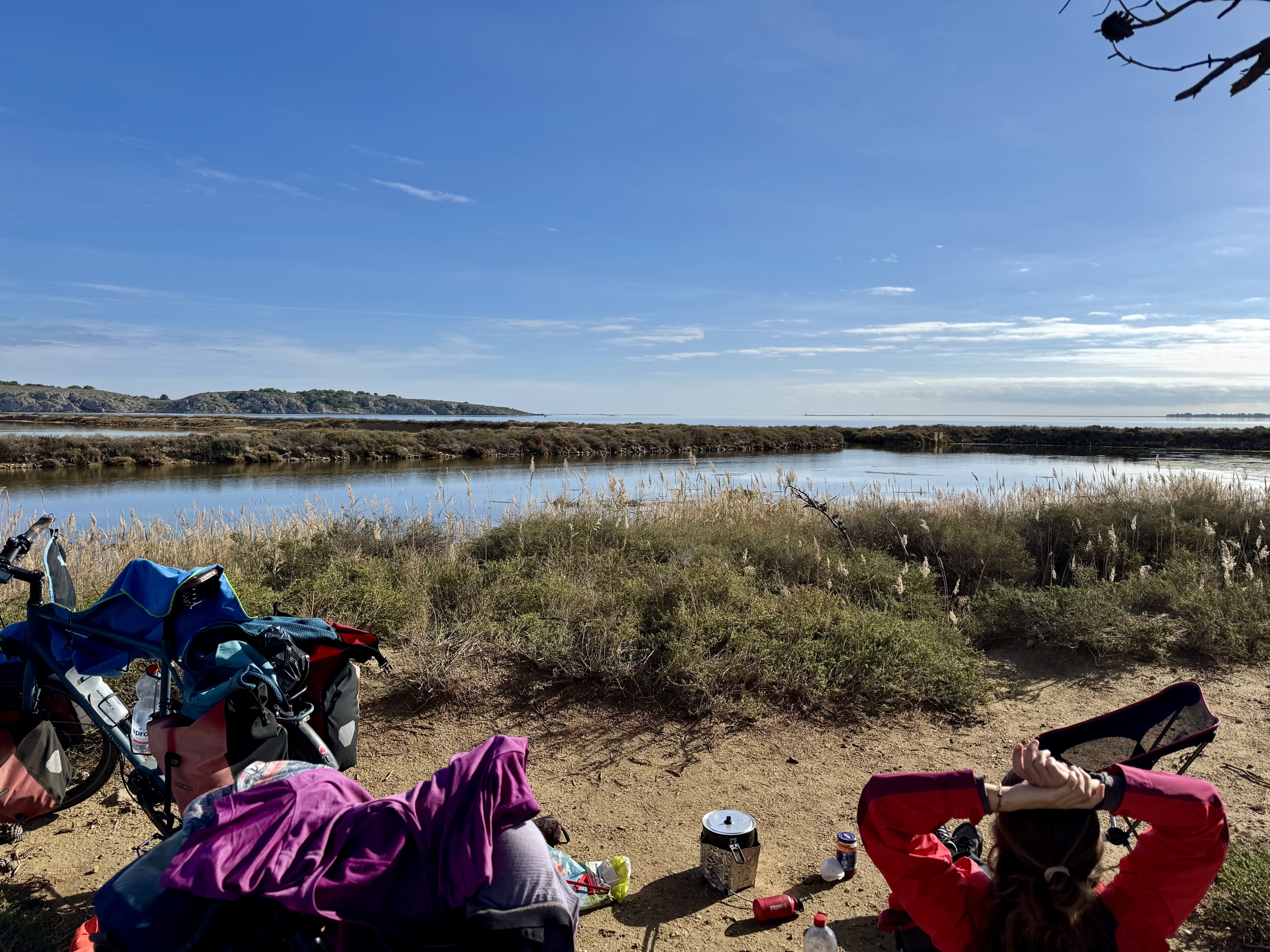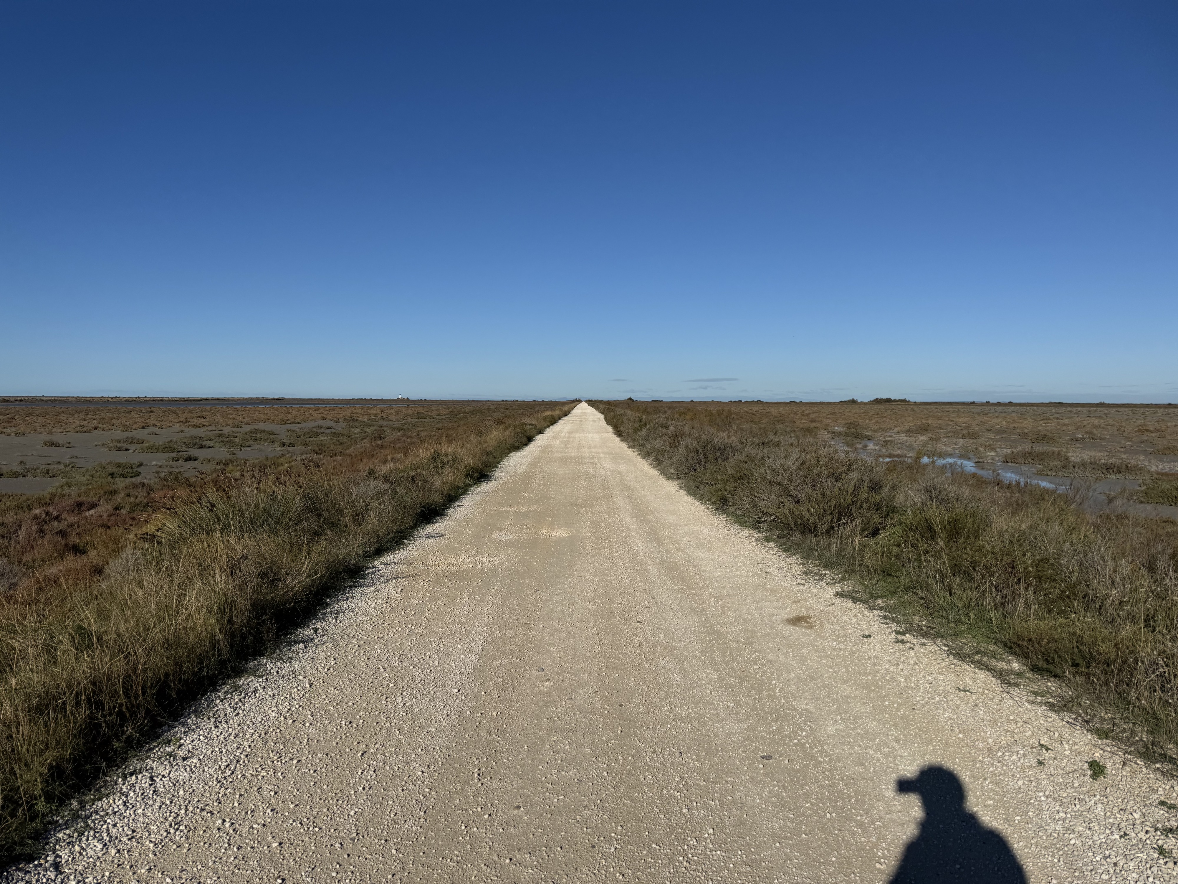 2.11.2025: Unser Plan war es eigentlich in Salin-de-Giraud auf dem Campingplatz zu übernachten. Wir hatten starken Gegenwind, waren müde, und für den nächsten Tag waren Böen mit bis zu 50 km/h angesagt. Dort angekommen stellten wir allerdings fest, dass der Campingplatz ausgerechnet ab heute für die Winterzeit schliesst.