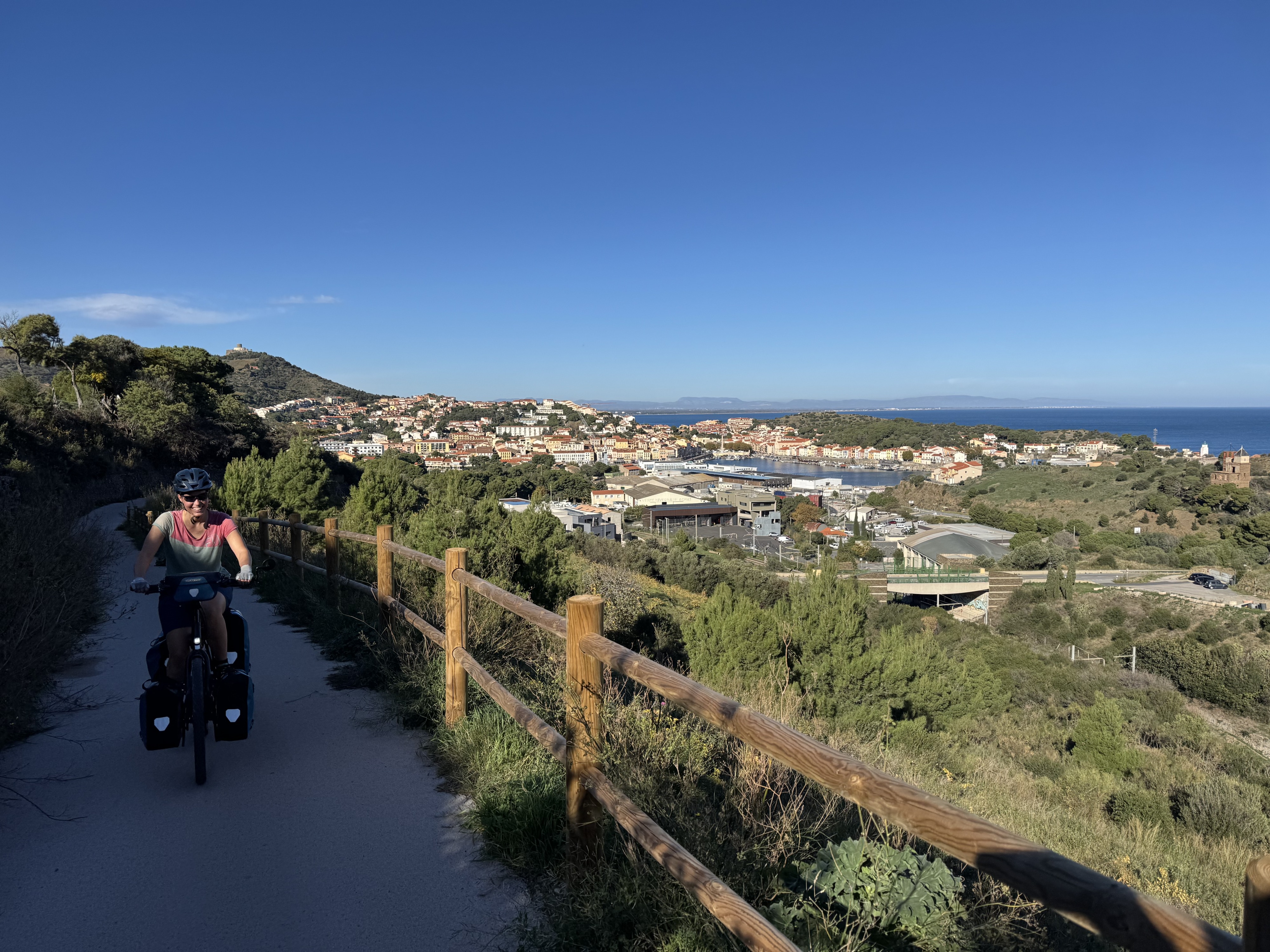 Langsam aber sicher zeigten sich die Pyrenäen auch auf dem Velo am Horizont und wir fuhren weiter entlang des EuroVelo 8. Der EV8 hat uns positiv überrascht: meist wunderbarer Asphalt, abseits der Strasse, oft direkt an der Küste entlang. Einzig die unzähligen Touristenburgen, die weit in den Himmel ragen, trübten das Bild. Wir wollten uns gar nicht ausmalen, wie es hier wohl in der Hochsaison aussieht!