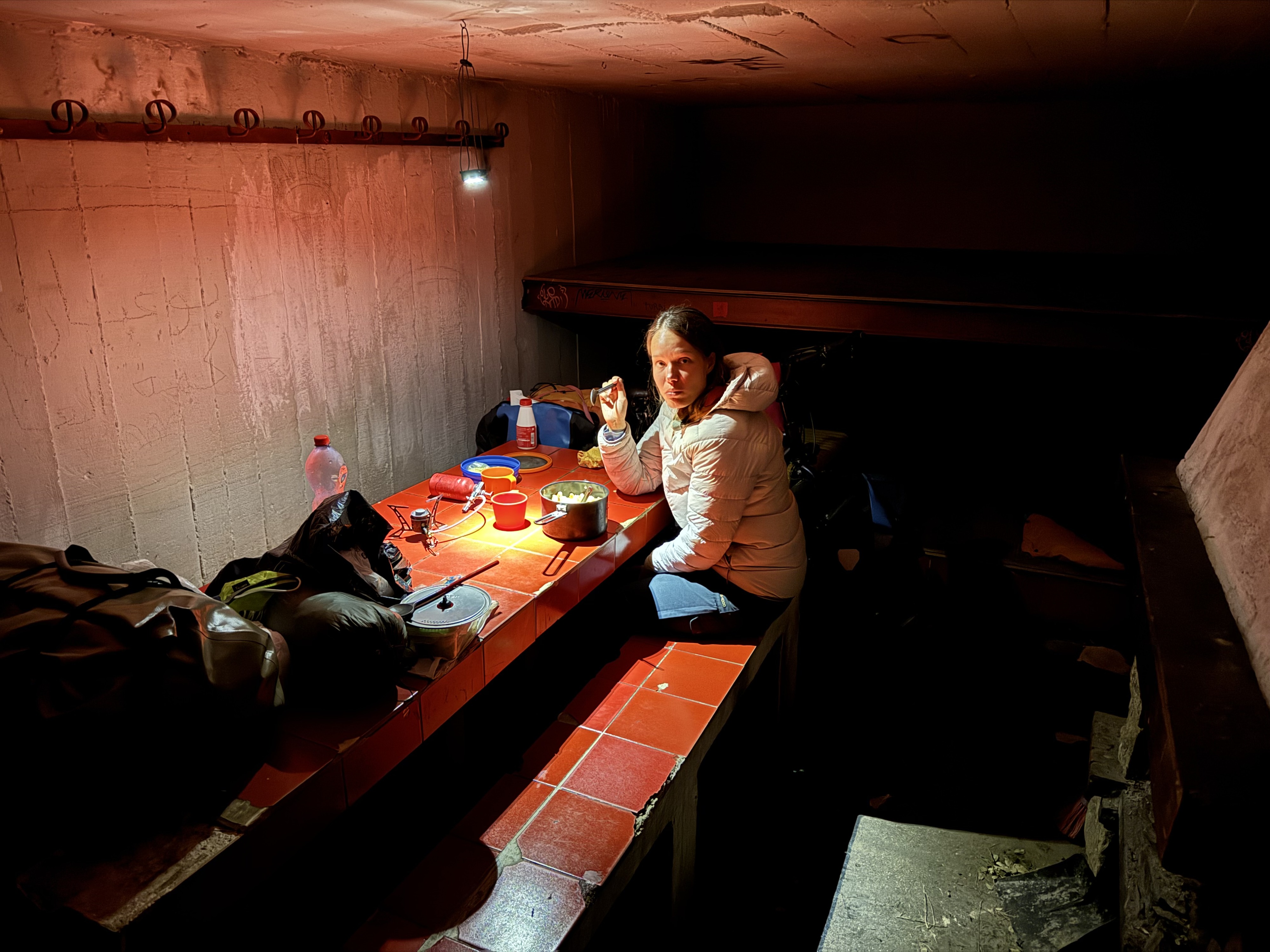 Die Hütte war früher einmal ein Bunker; dicker Stahlbeton und kleine Fenster machten die Übernachtung zu einem kleinen Abenteuer. Wir fragten uns unweigerlich, wie man sich wohl zu Kriegszeiten dort drin gefühlt haben musste 😣.