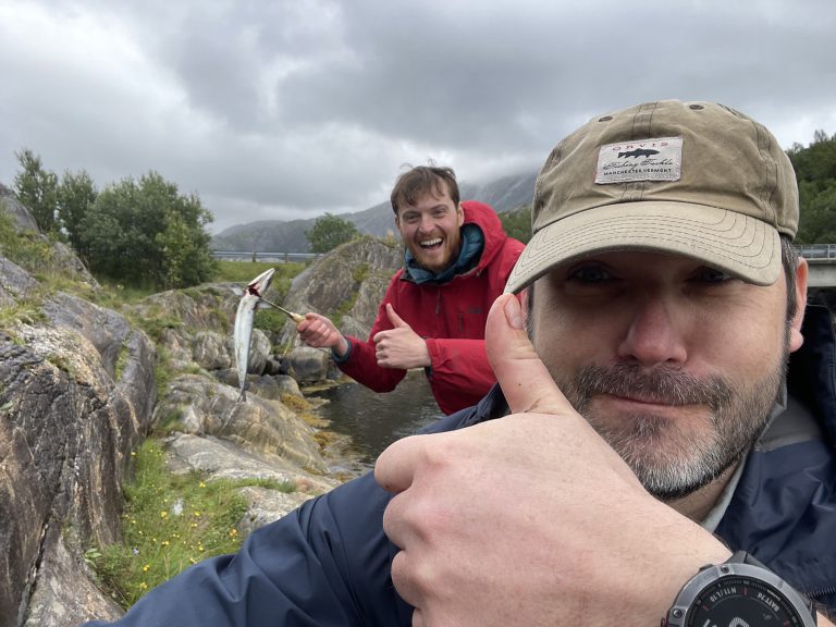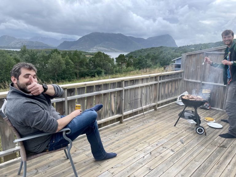 Durch die Mitnahme erreichten wir die Praxis vor unserem Termin, vielleicht war das unser grosses Glück, denn wir erhielten einen früheren Termin bei Artur, einem Chirurgen aus Oslo, der zur Aushilfe hier in der Praxis arbeitet. Bei ihm fühlten wir uns verstanden und er versuchte mit der rudimentären Ausrüstung, die ihm zur Verfügung stand, eine Diagnose zu stellen. Er konnte nichts Auffälliges feststellen und veranlasste diverse weitere Laboruntersuchungen. Da wir auf die Ergebnisse warten mussten und an eine Weiterfahrt sowieso nicht zu denken war, mussten wir noch eine Unterkunft finden. Dabei half uns die Krankenschwester der Praxis, die uns ein Zimmer im nächstbesten „Hotel“ buchte. Der Aufenthalt schmerzte zweifach, denn jede Nacht kostete uns CHF 100.- in einem sehr einfach ausgestatteten Zimmer mit Möglichkeit, um draussen im Regen auf unserem Kocher zu kochen 😅. Für den Einkauf musste Beni jeweils die Fähre nehmen und dann noch 10 Minuten mit dem Velo zum Laden fahren. Alles in allem eine 2-stündige Ausfahrt.