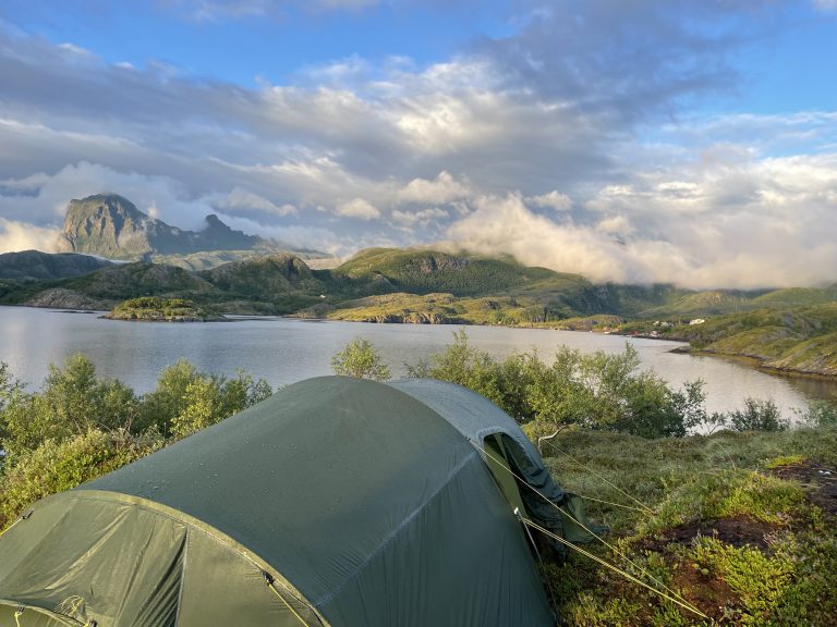 In Nesna, zurück auf unseren Velos, ist der trockene, warme und luxuriöse Spass dann auch schon wieder vorbei. Völlig übermüdet suchen wir bei gewohnten 12 Grad und Regen die erstbeste Gelegenheit unser Zelt aufzuschlagen und ein paar Stunden Schlaf nachzuholen.