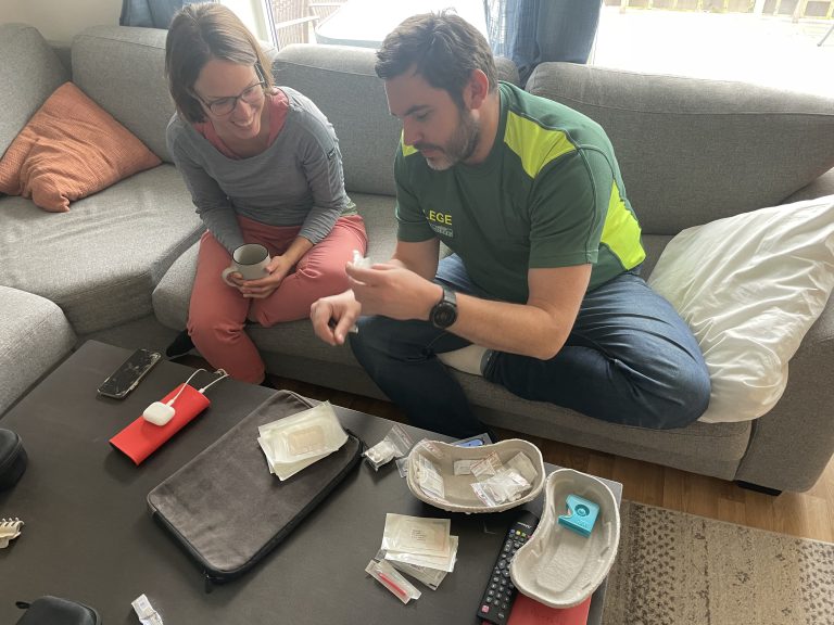 Nicole fühlte sich am nächsten Tag noch schlechter, der Fall war klar, wir mussten irgendwie eine Mitfahrgelegenheit organisieren. Beni fuhr zur Fährenstation, wo er den erstbesten Camper zu sich winken konnte. Er schilderte unsere Situation und die 5-fünfköpfige, extrem nette Familie aus Holland erklärte sich sofort bereit uns mitzunehmen. Nach einer nur 30-minütigen Fahrt und einem spannenden Austausch über Reisegeschichten lieferten sie uns bei der Praxis ab. Wir sind immer wieder froh, in solchen Fällen als Dank unsere Sackmesser-Mitbringsel dabei zu haben – die Kinder freuten sich riesig darüber.