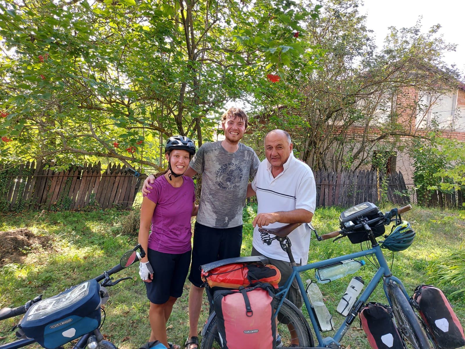 Nicht ganz ausgeschlafen wegen des Lärms des nächtlichen Wettjaulens zwischen Hunden und Schakalen pedalierten wir, Beni wieder in Schuss, durch wunderschönen und Schatten spendenden Wald nach Sioni. Nach einem letzten, gefühlt senkrechten Anstieg, erreichten wir die einfache Hütte mit prächtigem Garten, wo Dima und sein Vater bereits für die Schlüsselübergabe auf uns warteten.