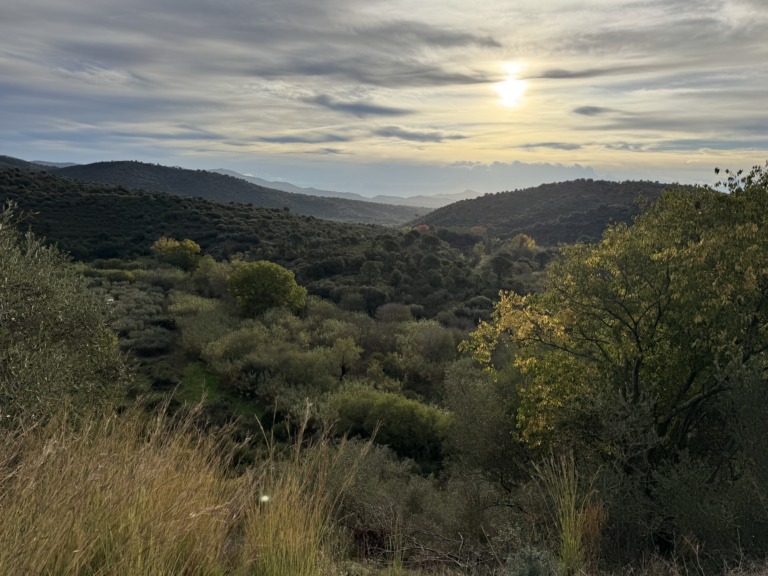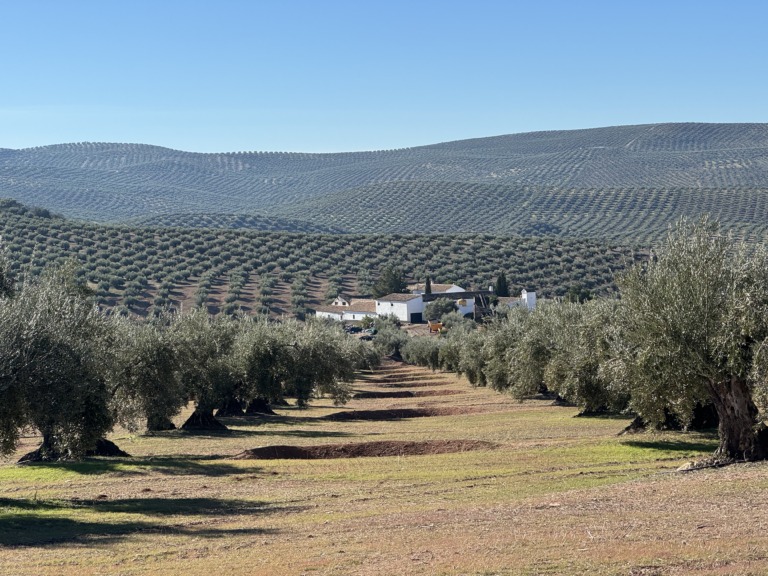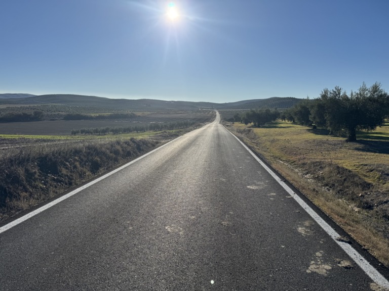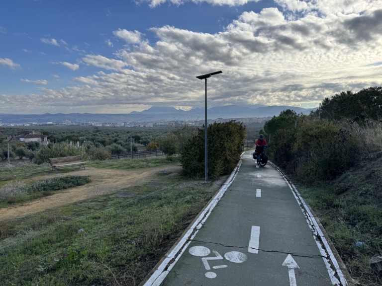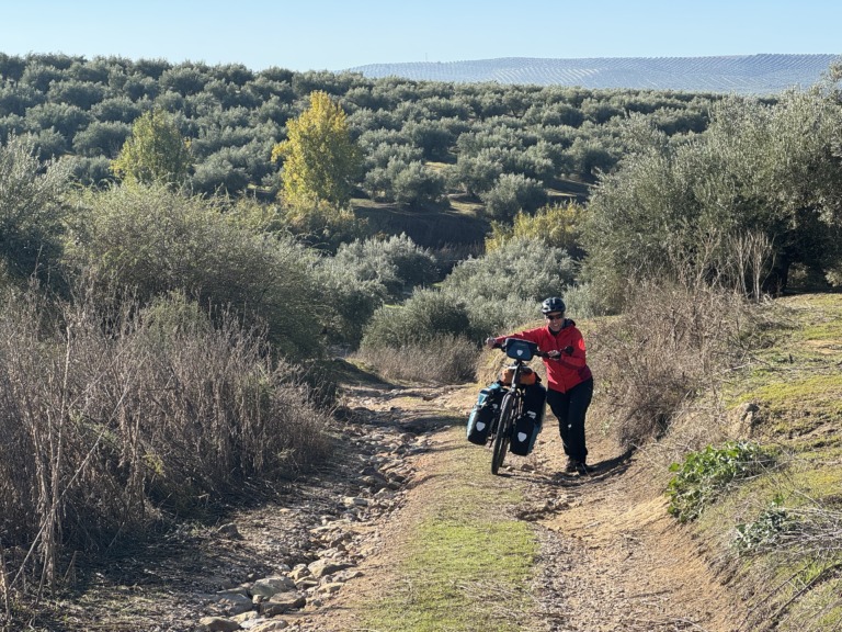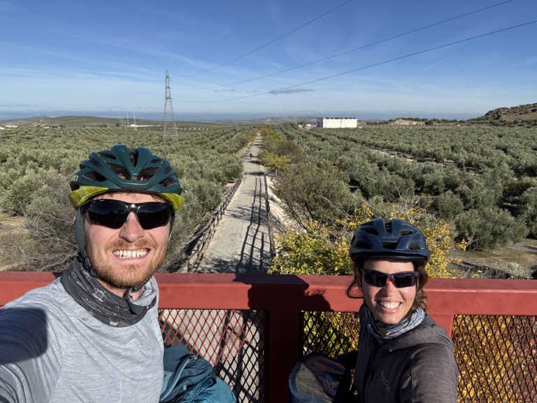 Ab Jaén folgen wir hauptsächlich dem European Divide Trail, einer Bikepacking-Route bis nach Cádiz. Dort werden wir am 13.12. die Fähre auf die Kanaren nehmen. Gleich hinter Jaén führte uns ein erstaunlich gut gepflegter Gravel-Veloweg mitten durch die Olivenplantagen Richtung Martos – direkt ins Herz der Olivenölproduktion. Erst als wir die ersten Höhenmeter geschafft hatten, wurde uns klar, wie unglaublich gross diese Plantagen sind. Mit etwa 175 bis 200 Millionen Olivenbäumen in Andalusien stammen schätzungsweise rund 30–36 % des weltweiten Olivenöls von hier. Egal wohin wir blicken: Am Horizont stehen immer Olivenbäume.
