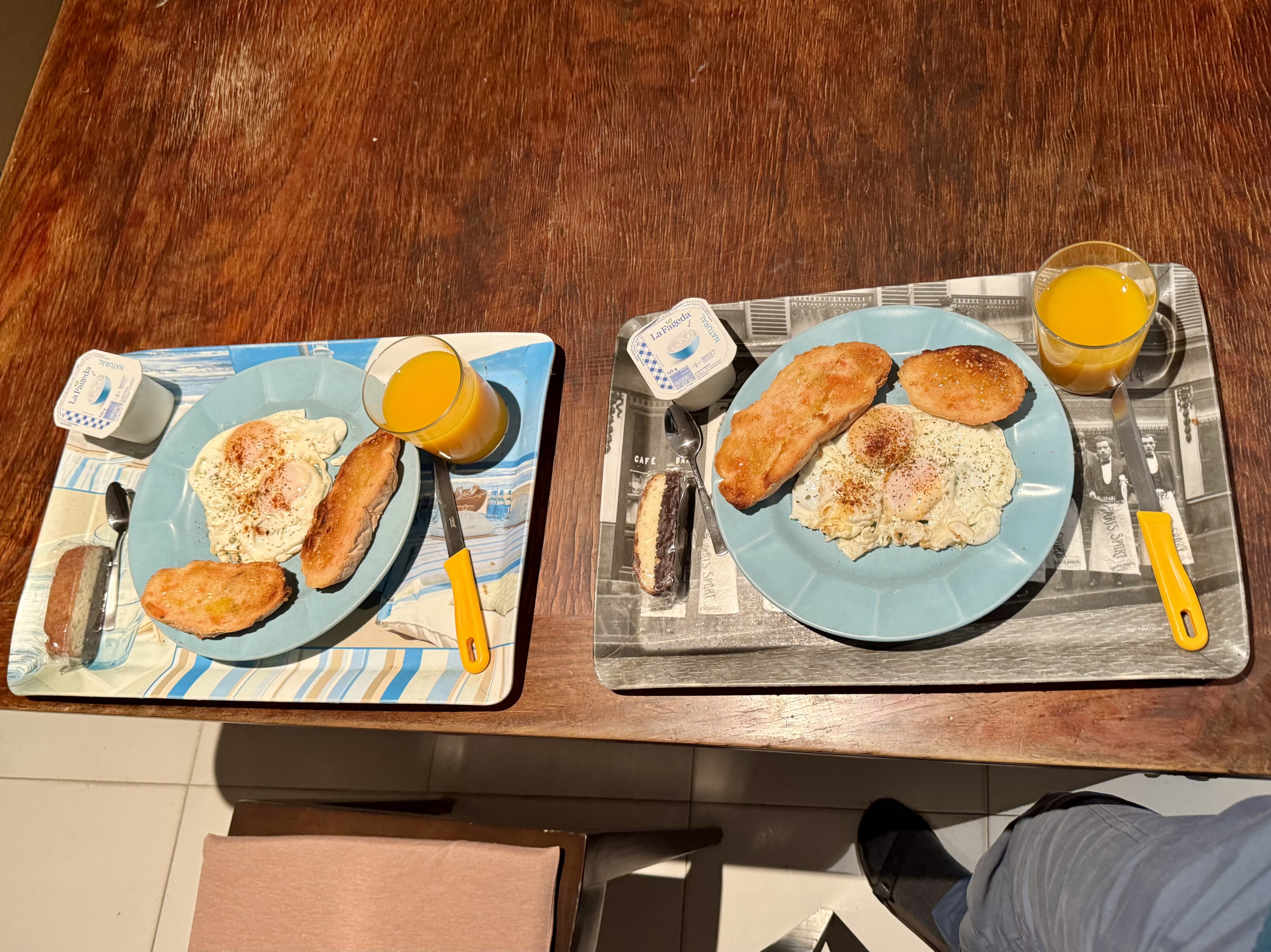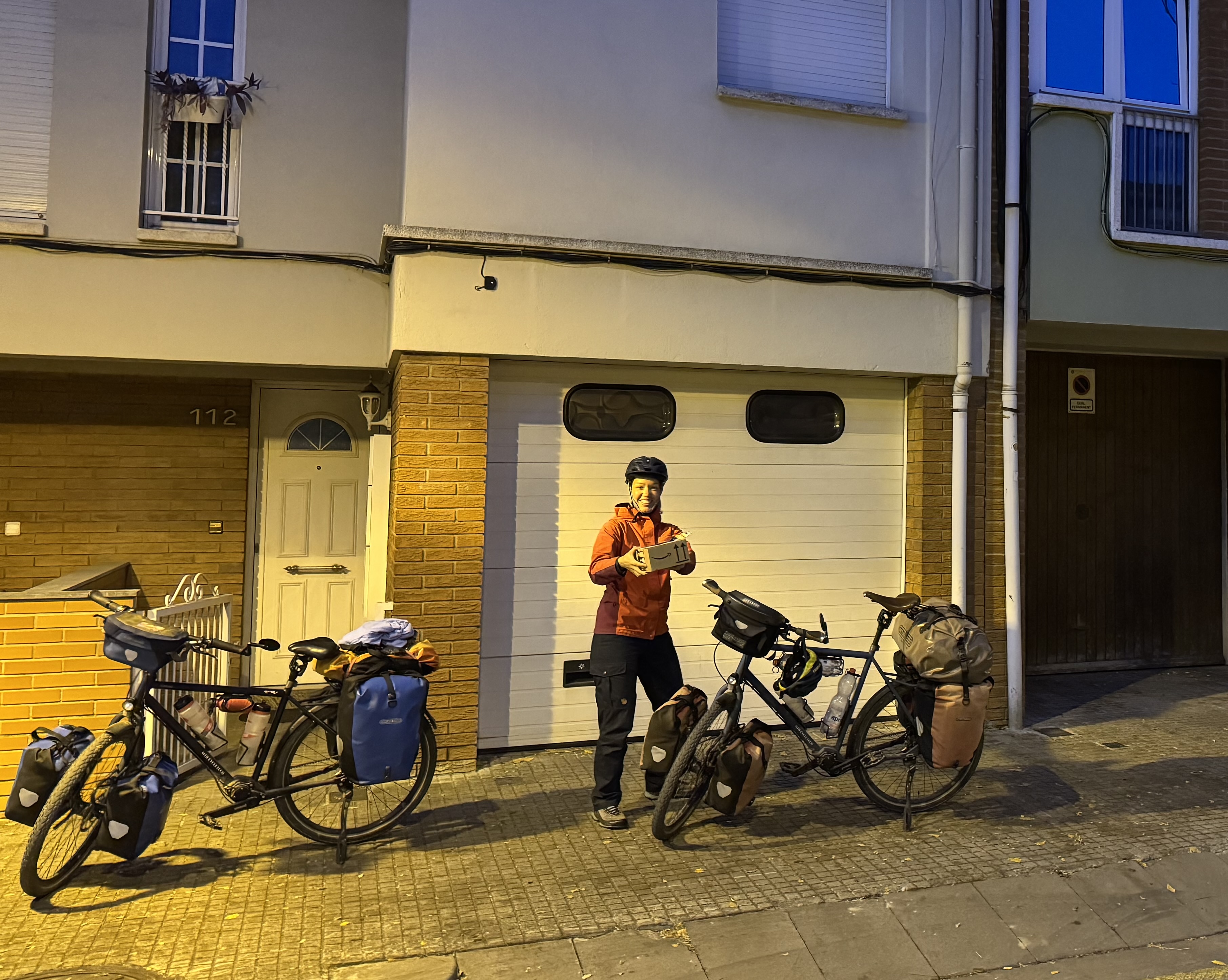 Auch sonst ist er eine echte Wundertüte. Wer hätte gedacht, dass ein Spanier schon mehrmals in der Schweiz an Iglubau-Treffen teilgenommen hat und dort sogar anderen beigebracht hat, wie man ein doppelstöckiges Iglu allein aus Schnee baut? Neben seinen Geschichten hat er uns auch kulinarisch verwöhnt; selbst eingelegte Oliven durften dabei natürlich nicht fehlen. Später am Abend kam noch seine Frau dazu, und die beiden erzählten von den vielen Warmshowers-Gästen, die sie schon beherbergt haben – im Schnitt eine Person pro Woche. Einmal hätten sie sogar das Auto draussen stehen lassen und die gesamte Garage mit Matratzen ausgelegt, um eine französische Familie mit vier Kindern zu beherbergen, alle ebenfalls mit dem Velo unterwegs.