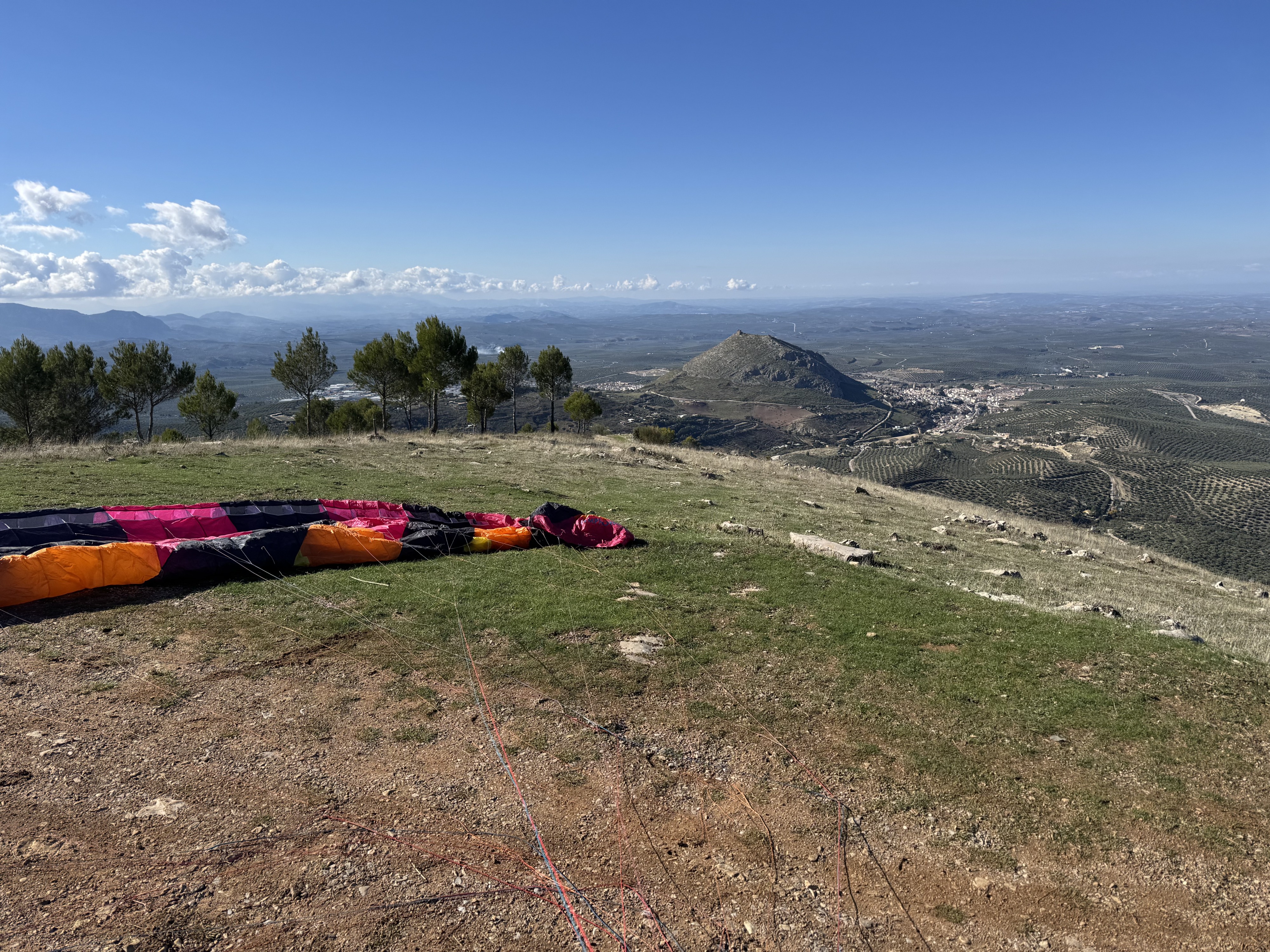 In Martos hatten wir eine Pause eingeplant. Die Stadt hat uns ausgesprochen gut gefallen. Hoch über ihr thront das Castillo de la Peña auf einem gewaltigen Felsen, und darunter schmiegt sich die Stadt in die Hänge – wunderschön. Nach der ersten Nacht in unserer Unterkunft wollte sich eigentlich auch Beni einfach einmal ausruhen. Doch das gute Flugwetter 🪂 und die direkte Sicht auf den offiziellen Startplatz waren zu verlockend. Es hat sich mehr als gelohnt: Er hatte den Himmel für sich allein und landete sicher in Martos. Für Interessierte: