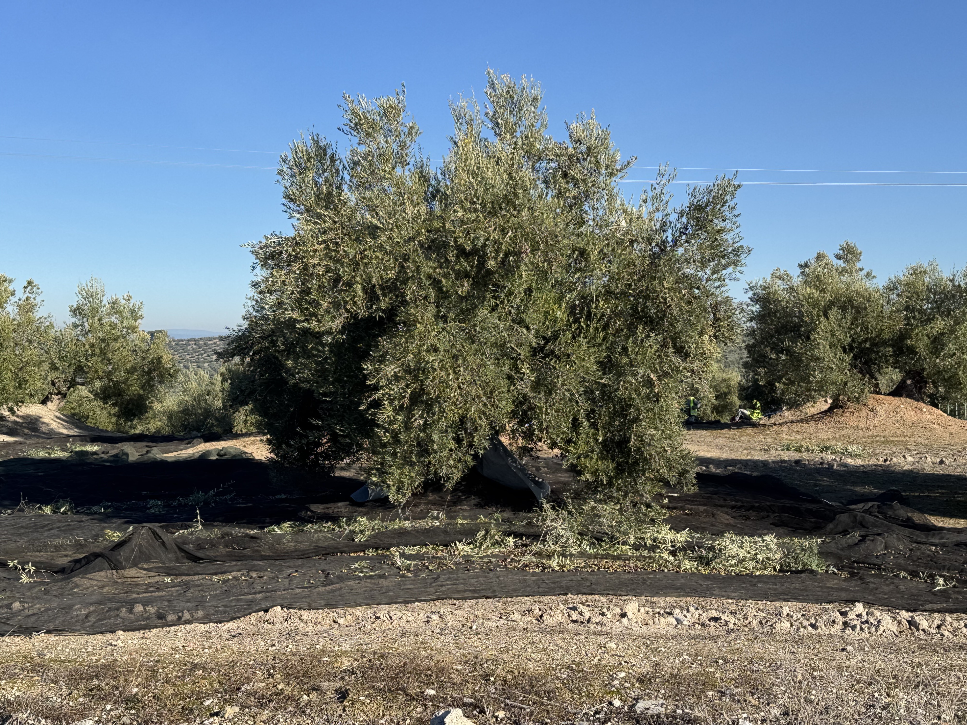 Der ganzen Olivenbaum-Monokultur zum Trotz haben wir die Weiten, die Farben der Hügel und die unglaubliche Ruhe auf dem Veloweg weiter Richtung Córdoba genossen. Es gibt eigentlich nichts Einfacheres als in dieser Umgebung einen guten Zeltplatz zwischen den Olivenbäumen zu finden, wäre da nicht gerade die Haupterntezeit 😊. So mussten wir schauen, dass wir in alle Richtungen mehr oder weniger nicht gesehen werden und uns dort niederliessen, wo bereits geerntet wurde. Die Bauern sind bei den noch nicht abgeernteten Bäumen eher vorsichtig, weil es öfters in der Nacht kriminelle Banden gab, welche grosse Mengen Oliven gestohlen haben. Allein in Andalusien verschwanden nach Schätzung der Polizei in der winterlichen Erntesaison 2023/2024 mehr als 500.000 Kilo Oliven von den Feldern. Deswegen überwachen die Bauern inzwischen mit Drohnen, Nachtsichtgeräten und Hubschraubern die Anbaugebiete.