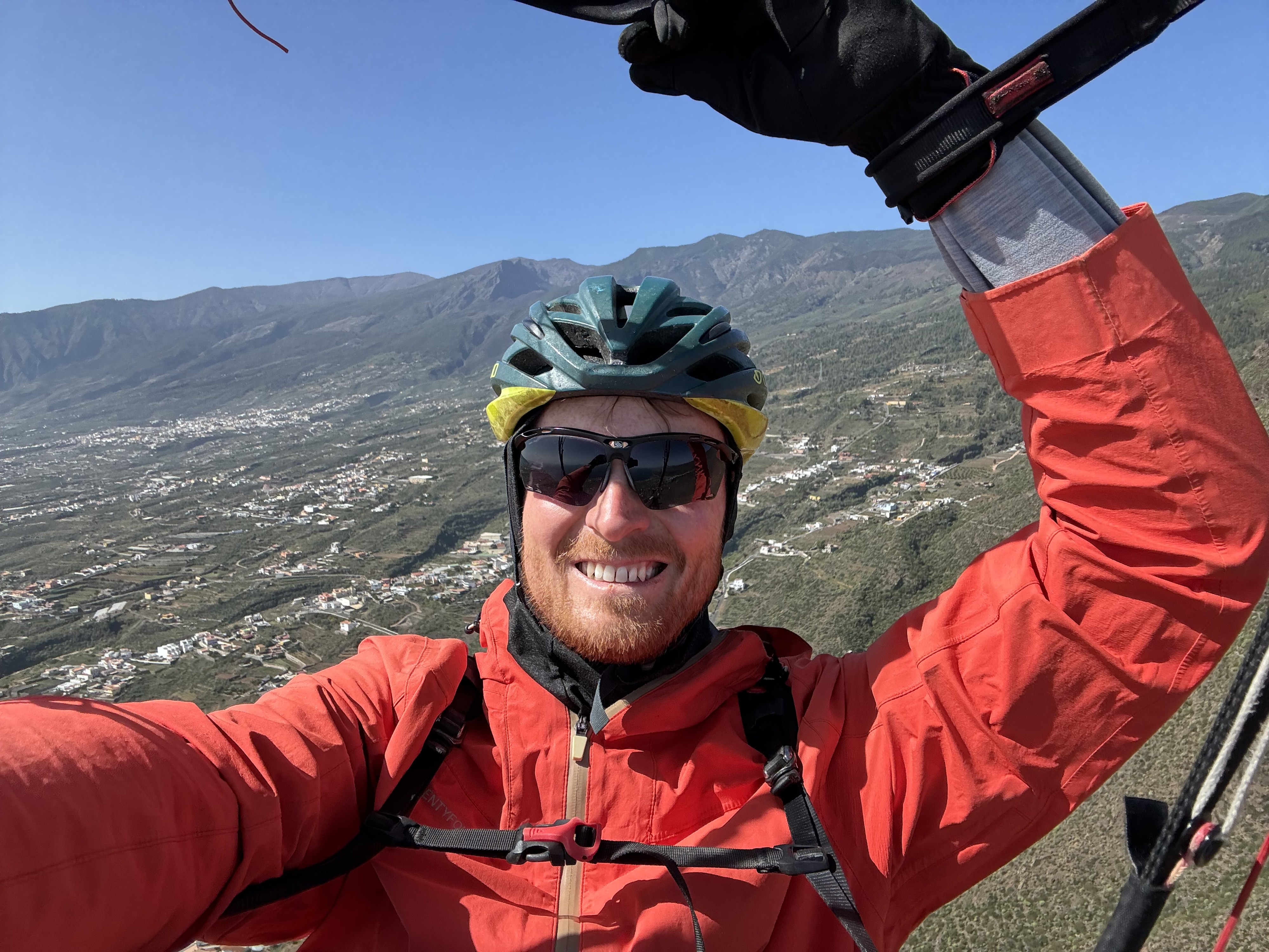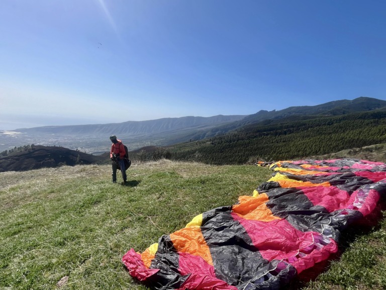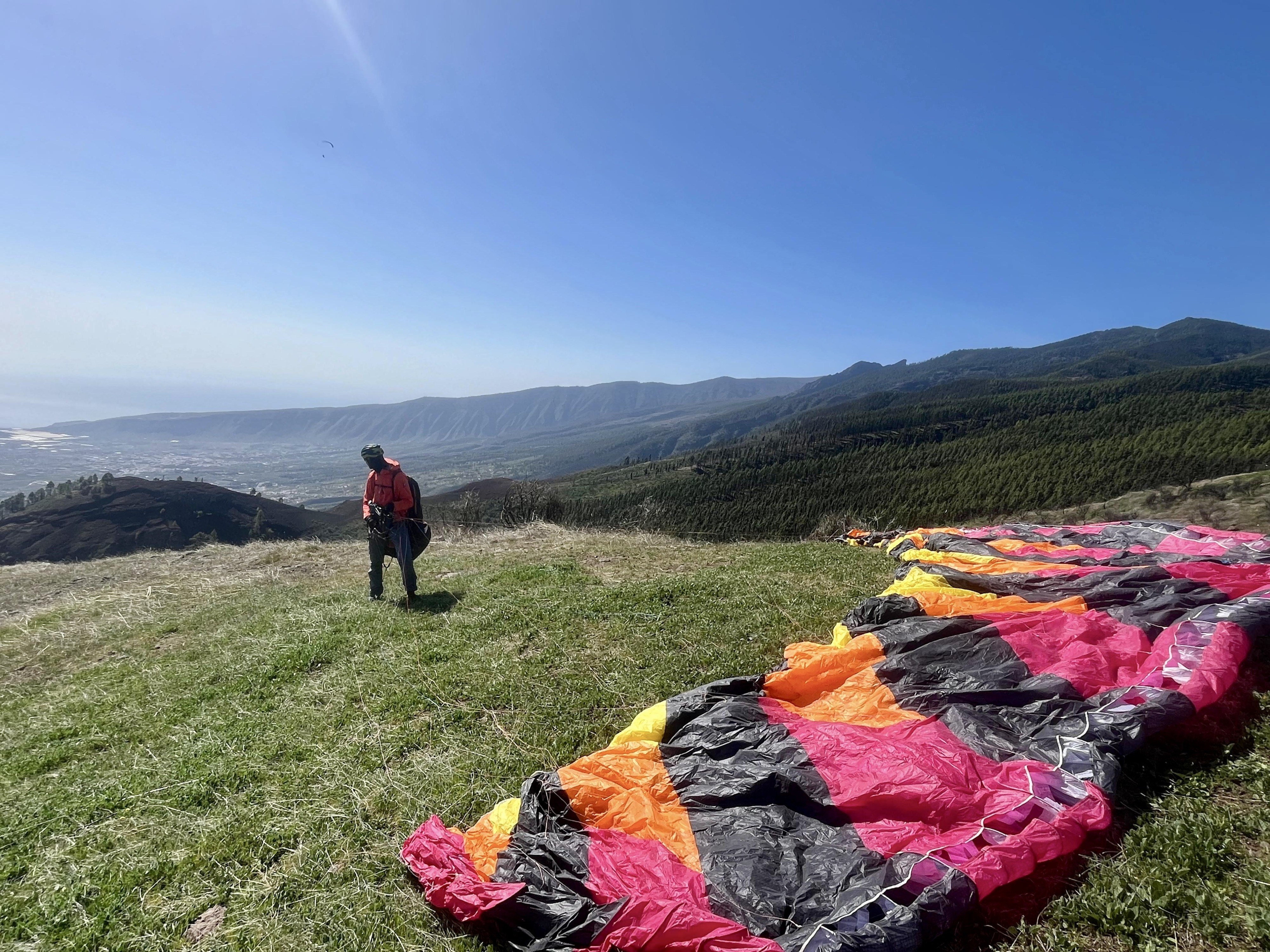 Beni geniesst vier abwechslungsreiche Flugtage. Einzig die getrübte Sicht durch den Saharastaub war etwas schade, da sie auch einiges an Thermik blockierte. Unterwegs ist er mit Para42, einem Unternehmen, das seit vielen Jahren von November bis März täglich (teilweise instruierte) Flüge anbietet. Das bedeutet: Man wird zu einem Fluggebiet gebracht, das an diesem Tag voraussichtlich gute Bedingungen bietet, und erhält ein kurzes Briefing. Alle Entscheidungen trifft man jedoch selbst, da es sich nicht um eine Flugschule handelt.