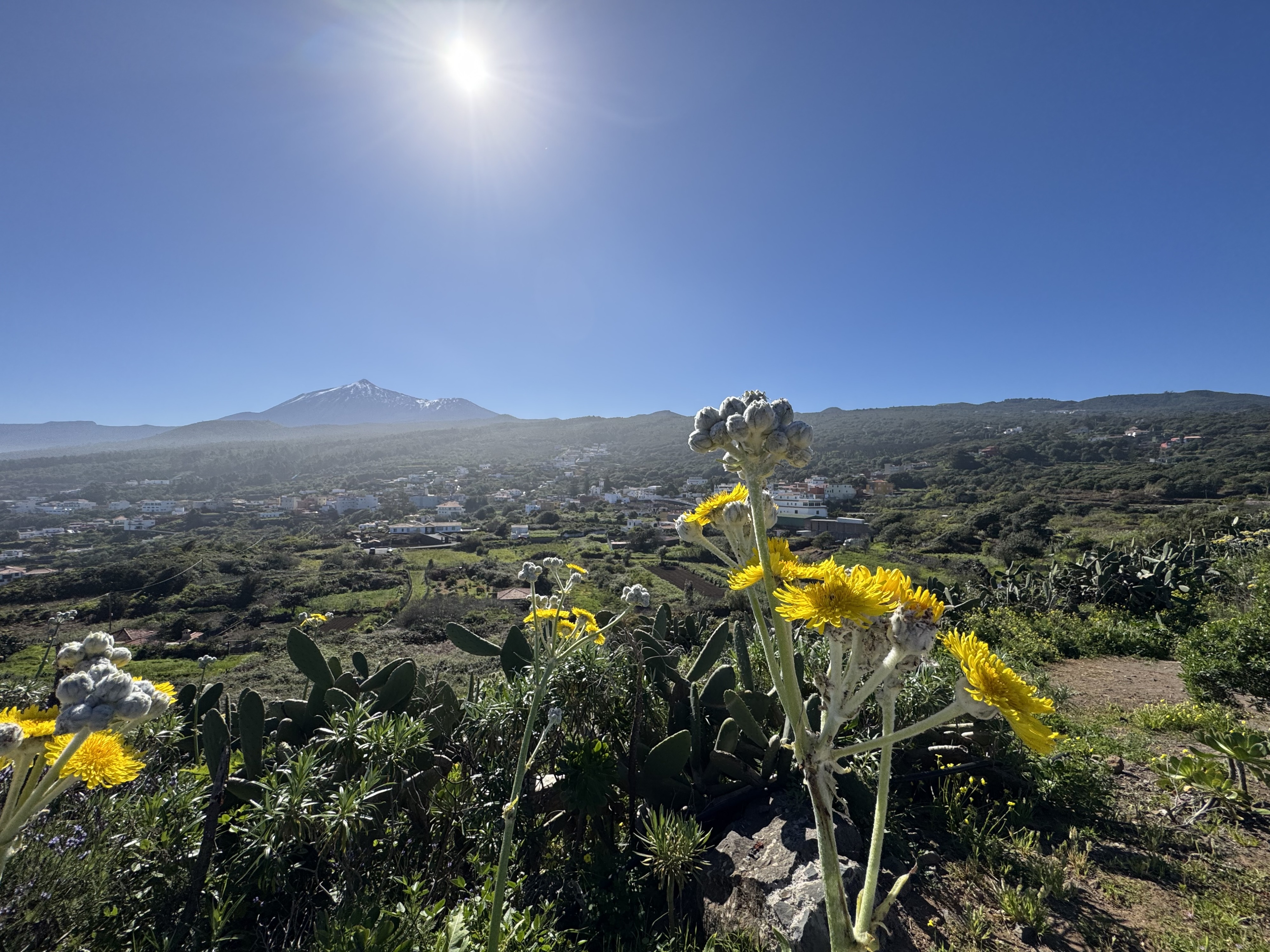 Auch herrlich ist der Anblick des schneebedeckten, 3’715 m hohen Gipfels des Teide, der sich immer wieder zeigt.