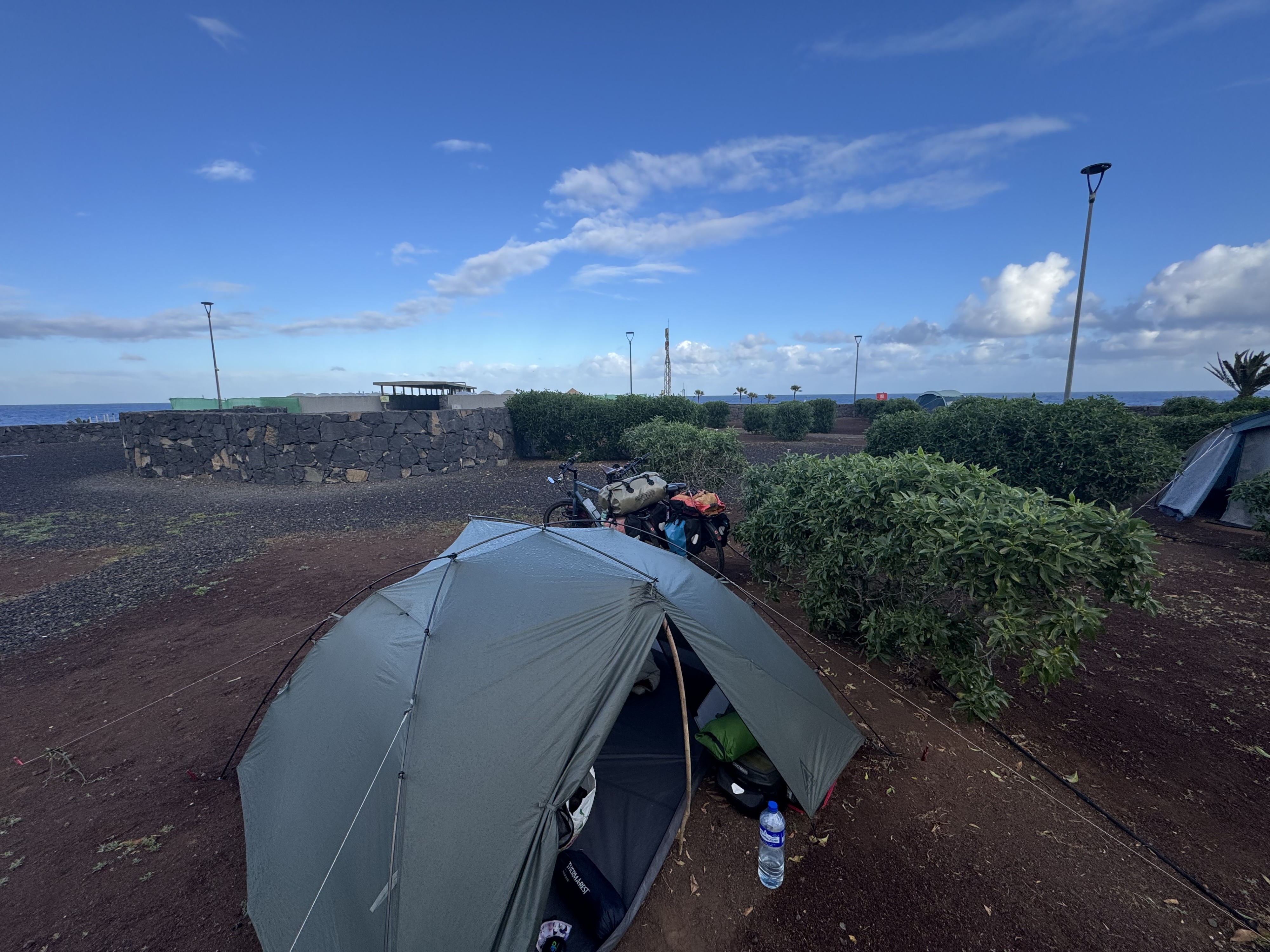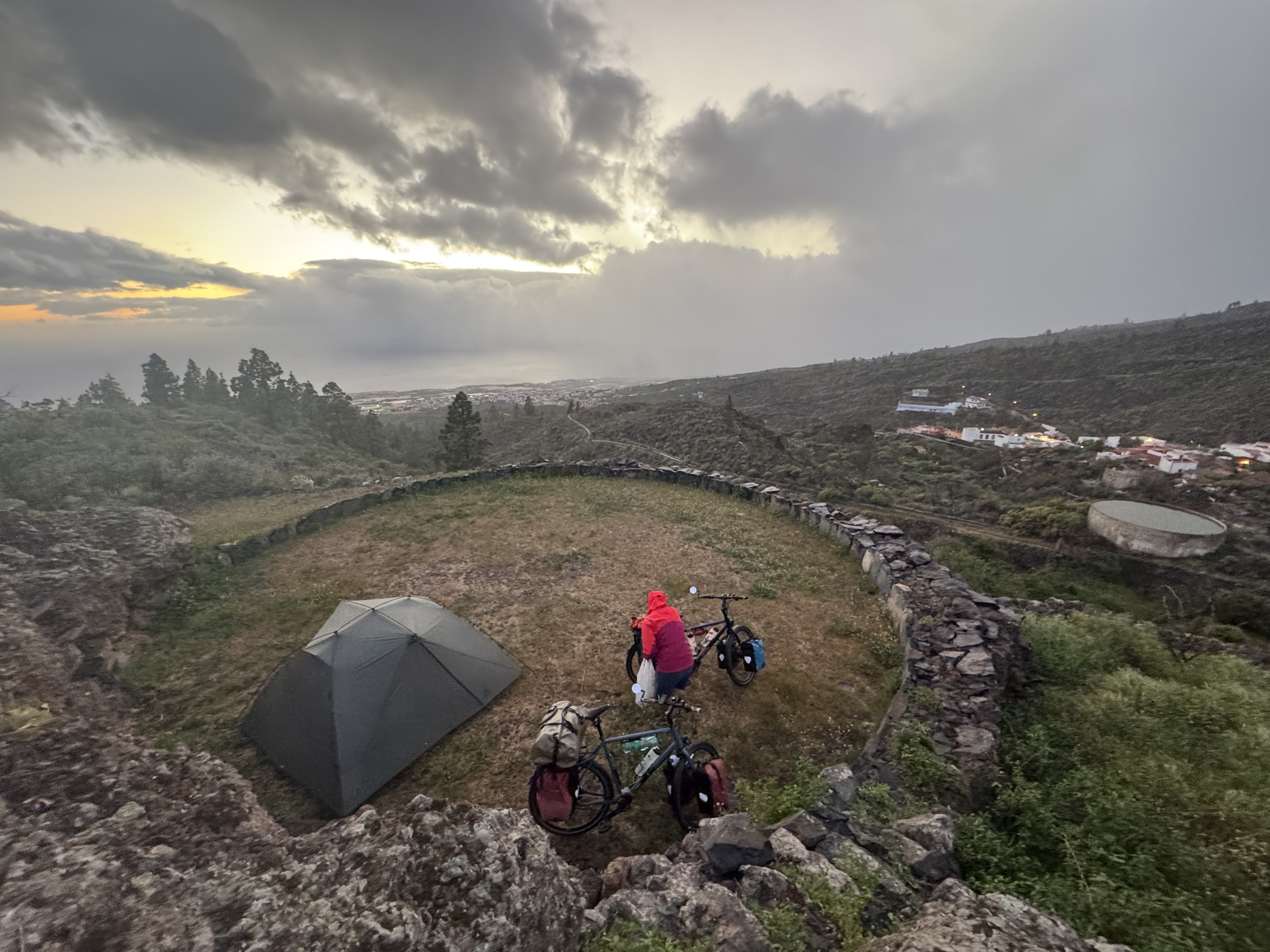 So beginnt die Abfahrt im leichten Nieselregen, und wir werden zunehmend nervös: Abgesehen vom Nationalpark ist die Insel bis weit hinauf dicht besiedelt. Es fällt uns heute besonders schwer, einen geeigneten Platz zum Wildcampen zu finden. Schlussendlich werden wir doch noch fündig – weit hinten in einem Barranco (Schlucht), gut versteckt, finden wir unsere Ruhe.