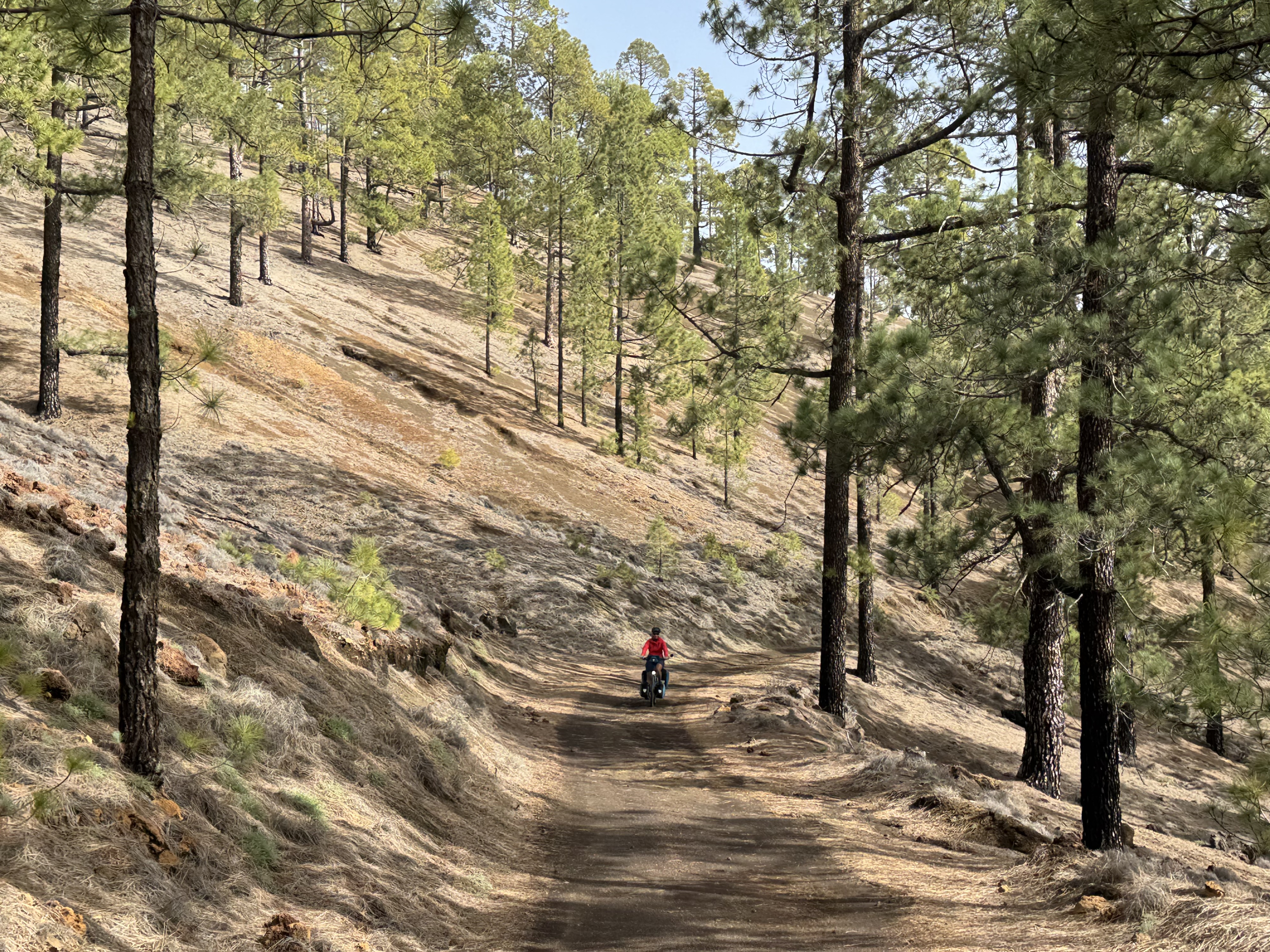 Nach diesen für Nicole entspannten und für Beni erlebnisreichen Tagen soll es mit dem Velo weitergehen – hinauf auf den BC-1 Ruta Forestal del Norte Mountainbike-Trail, der durch Teile des Teide-Nationalparks führt. Die Planung erweist sich jedoch als komplizierter als gedacht: Es scheint, als wäre etwa die Hälfte der Strecke wegen Erdrutschen oder anderen Problemen gesperrt.