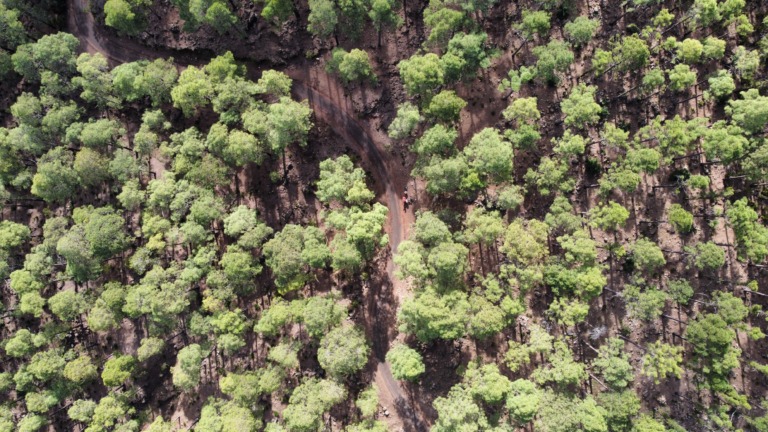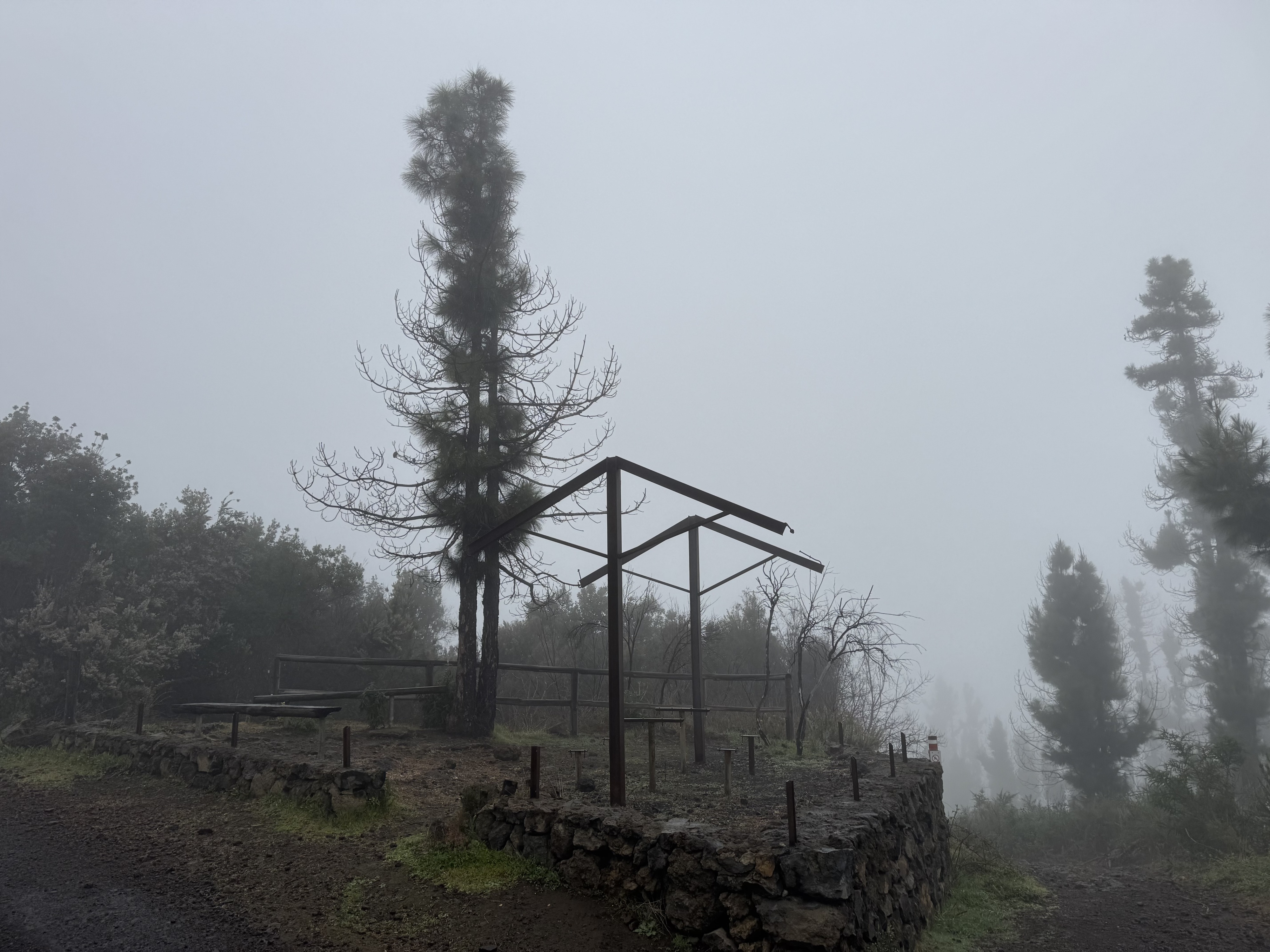 Also geht es ran an die Höhenmeter, denn der Trail startet auf 1’620 m ü. M. Erschwerend kommen starker Wind und zeitweise Regen hinzu. Der Wind bläst so heftig von der Seite, dass wir die Velos teilweise schieben müssen. Zu dieser Zeit spielt das Wetter auf den Kanaren ohnehin verrückt: So viel Regen und so starke Winde gab es seit über zehn Jahren nicht mehr.