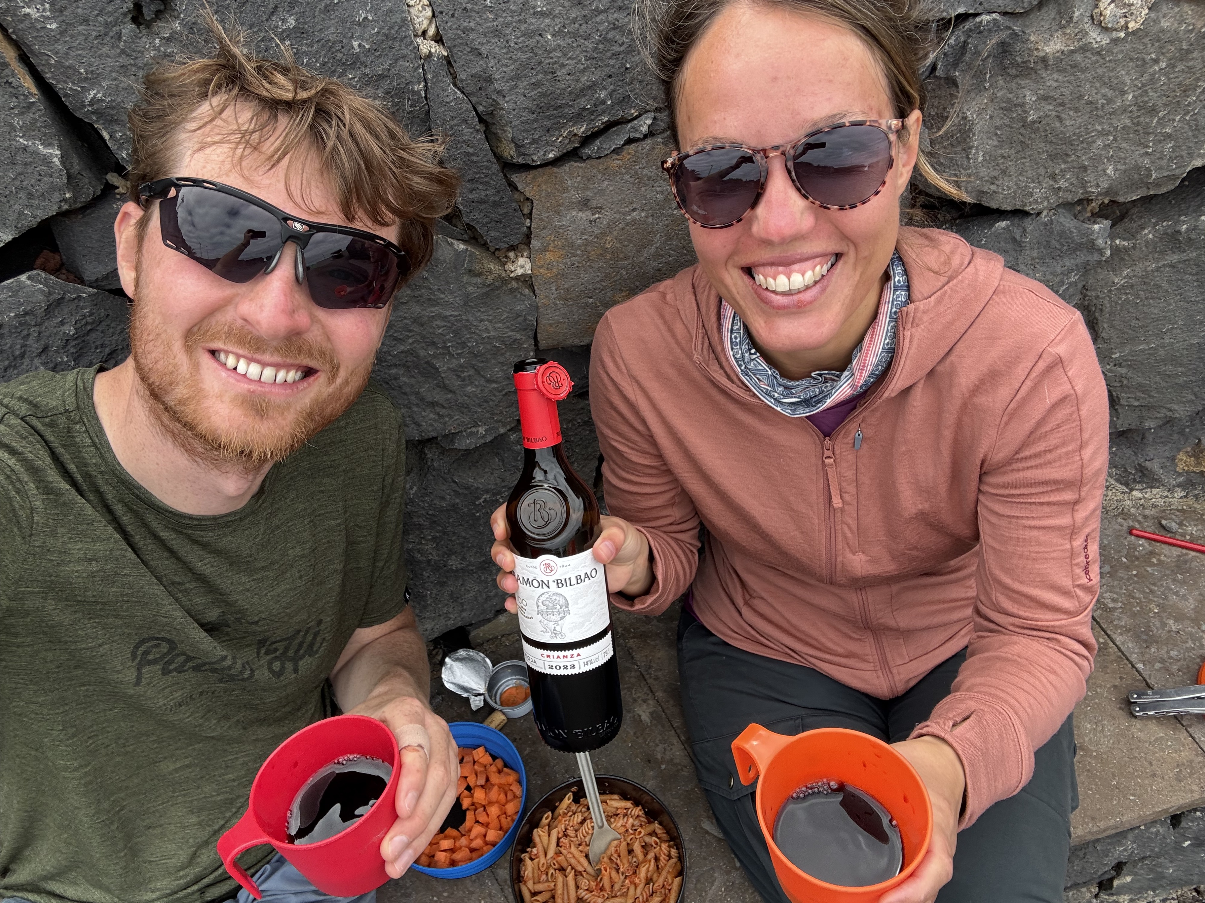 Mit etwas Improvisation steht das Zelt schliesslich bombensicher, und wir können uns entspannt auf die Suche nach einer warmen Dusche machen. Danach erledigen wir noch einen kleinen Einkauf für den bevorstehenden Sturmtag, den wir wohl im Zelt aussitzen werden.
