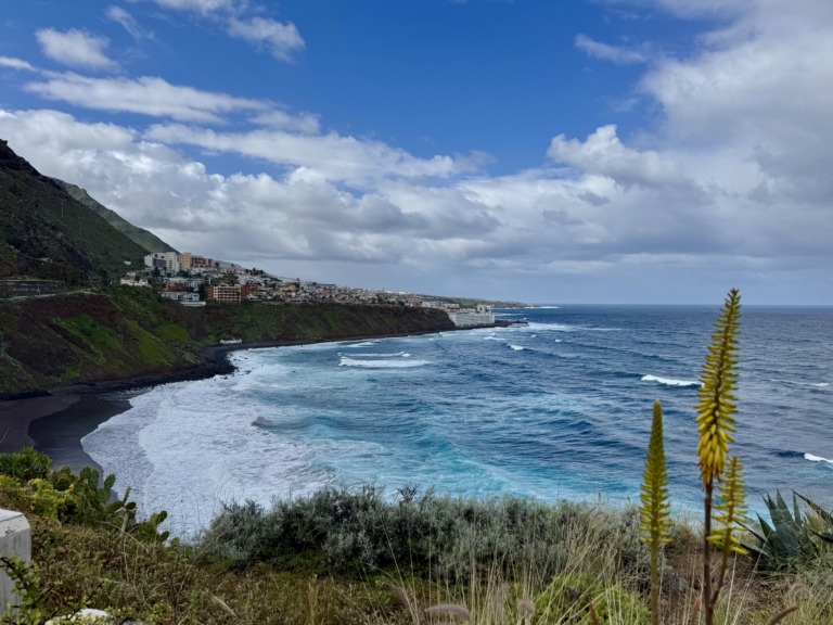 Es geht der Küste entlang: mal hoch, mal runter, mal Regen, mal Sonnenschein. Wir staunen nicht schlecht, wie dicht verbaut Teneriffa auch hier im Nordosten ist. Auf den anderen Inseln war der Norden bisher meist deutlich ruhiger – wohl auch, weil es dort häufiger regnet und sich weniger Touristen dort hin verirren.