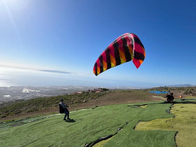 Ausnahmsweise haben wir für diese Insel zu Beginn bereits einen ganz konkreten Plan: Wir fahren rund 10 km Richtung Nordwesten, raus aus dem Trubel Richtung Adeje. Dort war Beni schon einmal für ein paar Tage mit einer Gruppe zum Gleitschirmfliegen – und genau das macht er auch dieses Mal wieder.