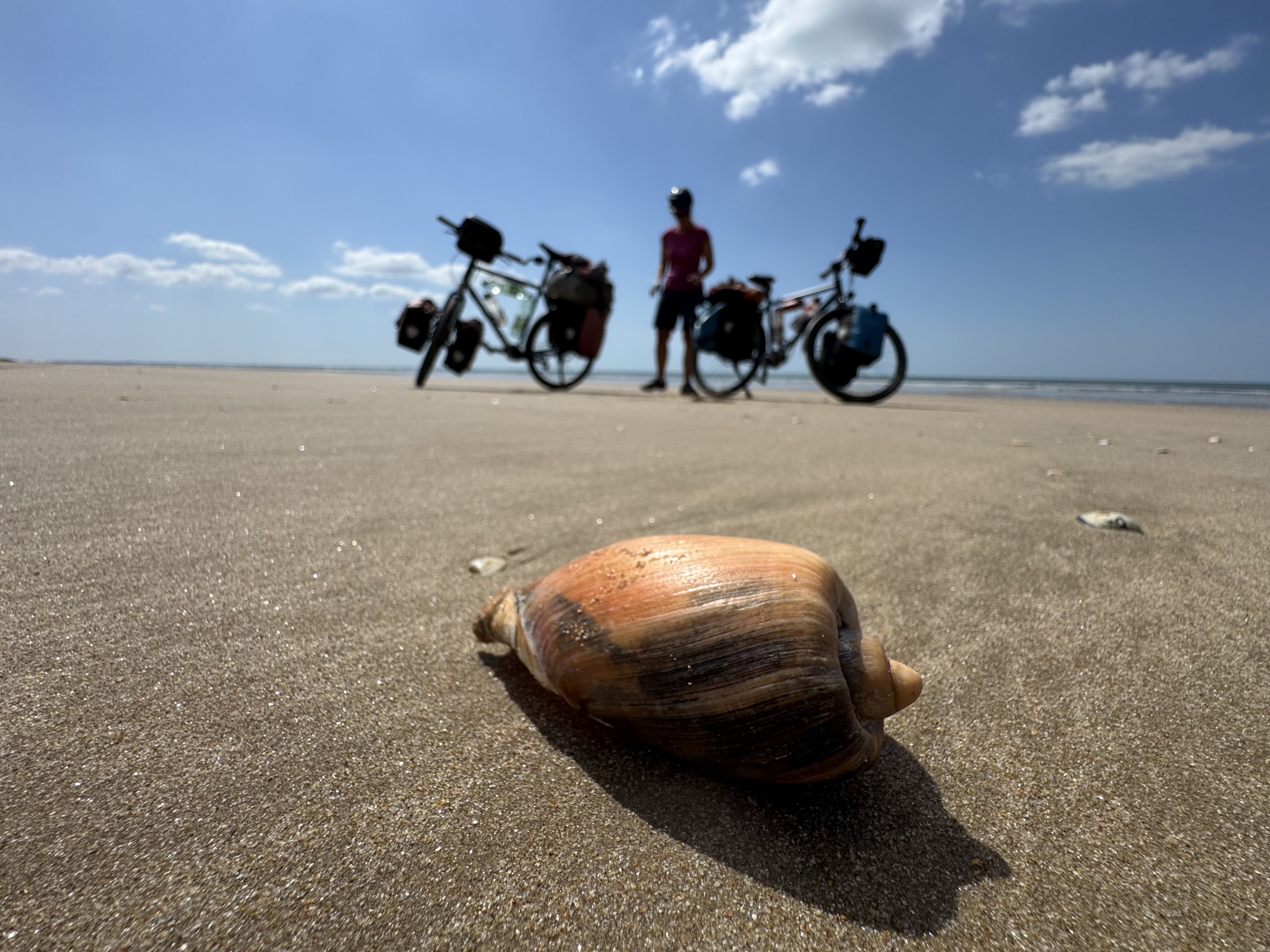 Die ersten 15 km fühlen sich richtig gut an. Wir kommen zügig voran und geniessen die komplette Abgeschiedenheit – nur wir und 30 km Sandstrand. Nach etwa der Hälfte wird der Sand jedoch stellenweise weicher und die letzten Kilometer werden zur echten Herausforderung. Teilweise müssen wir die Velos schieben. Trotz allem bleibt es ein einzigartiges Erlebnis. Einzig die sporadisch vorbeifahrenden Offroad-Touristenbusse und der angeschwemmte Abfall trüben das Bild etwas.